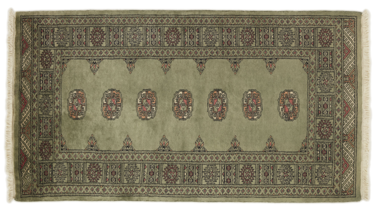 Una gran parte de la producción de alfombras pakistaníes tiene lugar en las ciudades de Lahore y Karachi y sus alrededores. Muchos de los tejedores de alfombras de esa época huyeron a Pakistán durante la guerra con la India y se establecieron allí. Hoy en día, se conocen especialmente las alfombras anudadas a mano de Pakistán Bukhara. Al igual que las alfombras orientales afganas, las alfombras paquistaníes también son de colores oscuros y en su mayoría tienen tonos rojos. También el conocido patrón de pata de elefante (patrón octogonal repetido) se puede encontrar en un pakistaní.