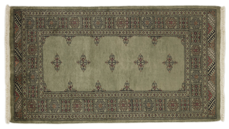 Una gran parte de la producción de alfombras pakistaníes tiene lugar en las ciudades de Lahore y Karachi y sus alrededores. Muchos de los tejedores de alfombras de esa época huyeron a Pakistán durante la guerra con la India y se establecieron allí. Hoy en día, se conocen especialmente las alfombras anudadas a mano de Pakistán Bukhara. Al igual que las alfombras orientales afganas, las alfombras paquistaníes también son de colores oscuros y en su mayoría tienen tonos rojos. También el conocido patrón de pata de elefante (patrón octogonal repetido) se puede encontrar en un pakistaní.