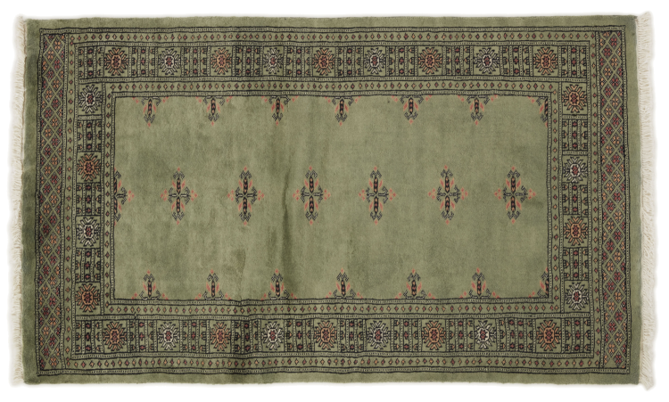 Una gran parte de la producción de alfombras pakistaníes tiene lugar en las ciudades de Lahore y Karachi y sus alrededores. Muchos de los tejedores de alfombras de esa época huyeron a Pakistán durante la guerra con la India y se establecieron allí. Hoy en día, se conocen especialmente las alfombras anudadas a mano de Pakistán Bukhara. Al igual que las alfombras orientales afganas, las alfombras paquistaníes también son de colores oscuros y en su mayoría tienen tonos rojos. También el conocido patrón de pata de elefante (patrón octogonal repetido) se puede encontrar en un pakistaní.