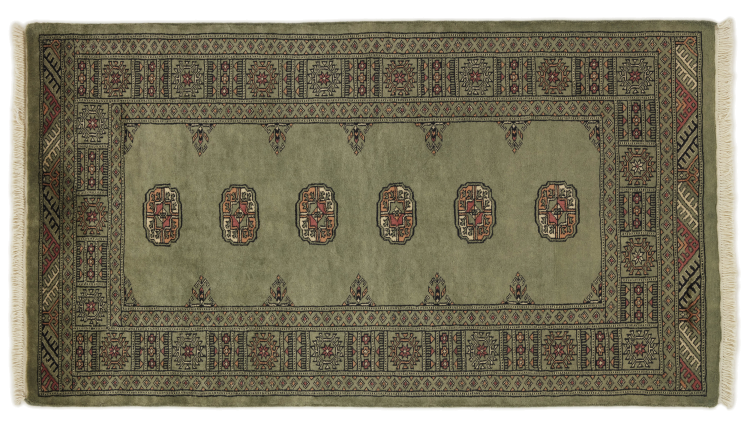 Una gran parte de la producción de alfombras pakistaníes tiene lugar en las ciudades de Lahore y Karachi y sus alrededores. Muchos de los tejedores de alfombras de esa época huyeron a Pakistán durante la guerra con la India y se establecieron allí. Hoy en día, se conocen especialmente las alfombras anudadas a mano de Pakistán Bukhara. Al igual que las alfombras orientales afganas, las alfombras paquistaníes también son de colores oscuros y en su mayoría tienen tonos rojos. También el conocido patrón de pata de elefante (patrón octogonal repetido) se puede encontrar en un pakistaní.