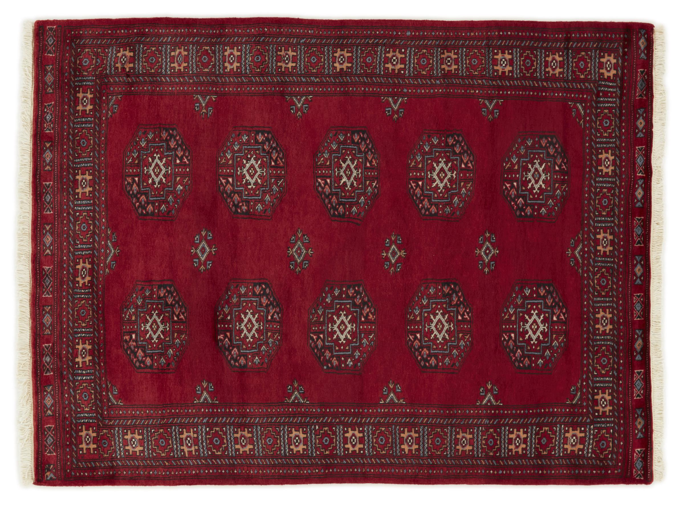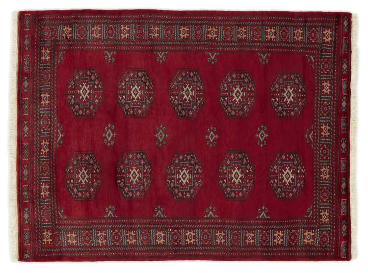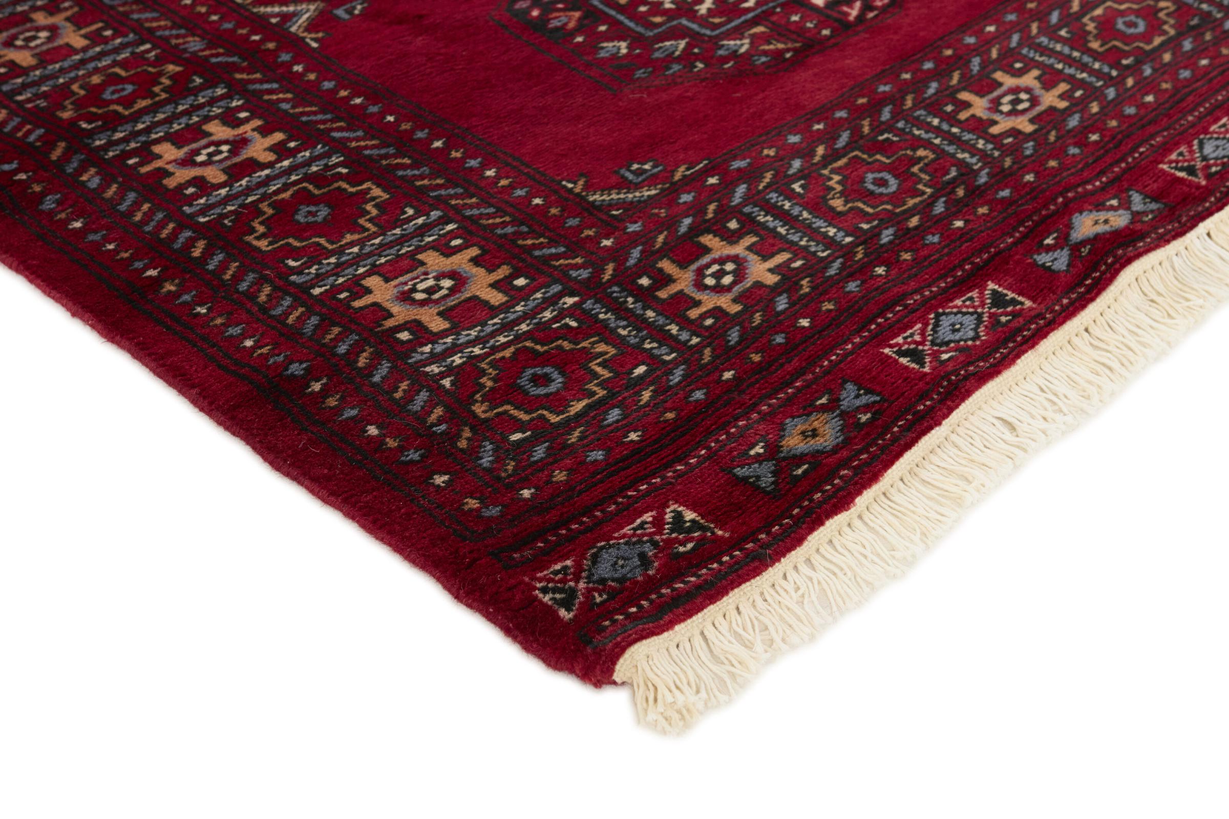 Una gran parte de la producción de alfombras pakistaníes tiene lugar en las ciudades de Lahore y Karachi y sus alrededores. Muchos de los tejedores de alfombras de esa época huyeron a Pakistán durante la guerra con la India y se establecieron allí. Hoy en día, se conocen especialmente las alfombras anudadas a mano de Pakistán Bukhara. Al igual que las alfombras orientales afganas, las alfombras paquistaníes también son de colores oscuros y en su mayoría tienen tonos rojos. También el conocido patrón de pata de elefante (patrón octogonal repetido) se puede encontrar en un pakistaní.
