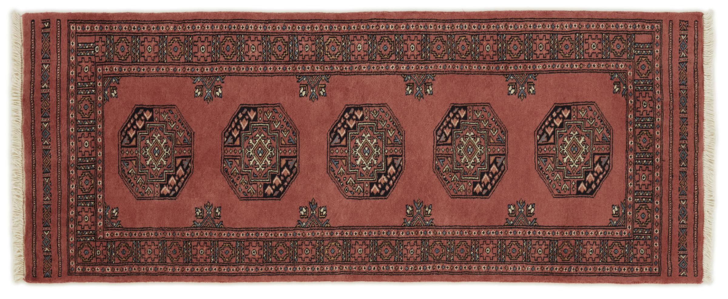 Una gran parte de la producción de alfombras pakistaníes tiene lugar en las ciudades de Lahore y Karachi y sus alrededores. Muchos de los tejedores de alfombras de esa época huyeron a Pakistán durante la guerra con la India y se establecieron allí. Hoy en día, se conocen especialmente las alfombras anudadas a mano de Pakistán Bukhara. Al igual que las alfombras orientales afganas, las alfombras paquistaníes también son de colores oscuros y en su mayoría tienen tonos rojos. También el conocido patrón de pata de elefante (patrón octogonal repetido) se puede encontrar en un pakistaní.