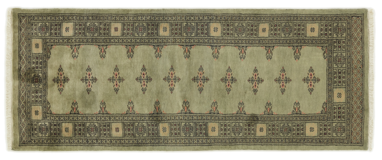 Una gran parte de la producción de alfombras pakistaníes tiene lugar en las ciudades de Lahore y Karachi y sus alrededores. Muchos de los tejedores de alfombras de esa época huyeron a Pakistán durante la guerra con la India y se establecieron allí. Hoy en día, se conocen especialmente las alfombras anudadas a mano de Pakistán Bukhara. Al igual que las alfombras orientales afganas, las alfombras paquistaníes también son de colores oscuros y en su mayoría tienen tonos rojos. También el conocido patrón de pata de elefante (patrón octogonal repetido) se puede encontrar en un pakistaní.