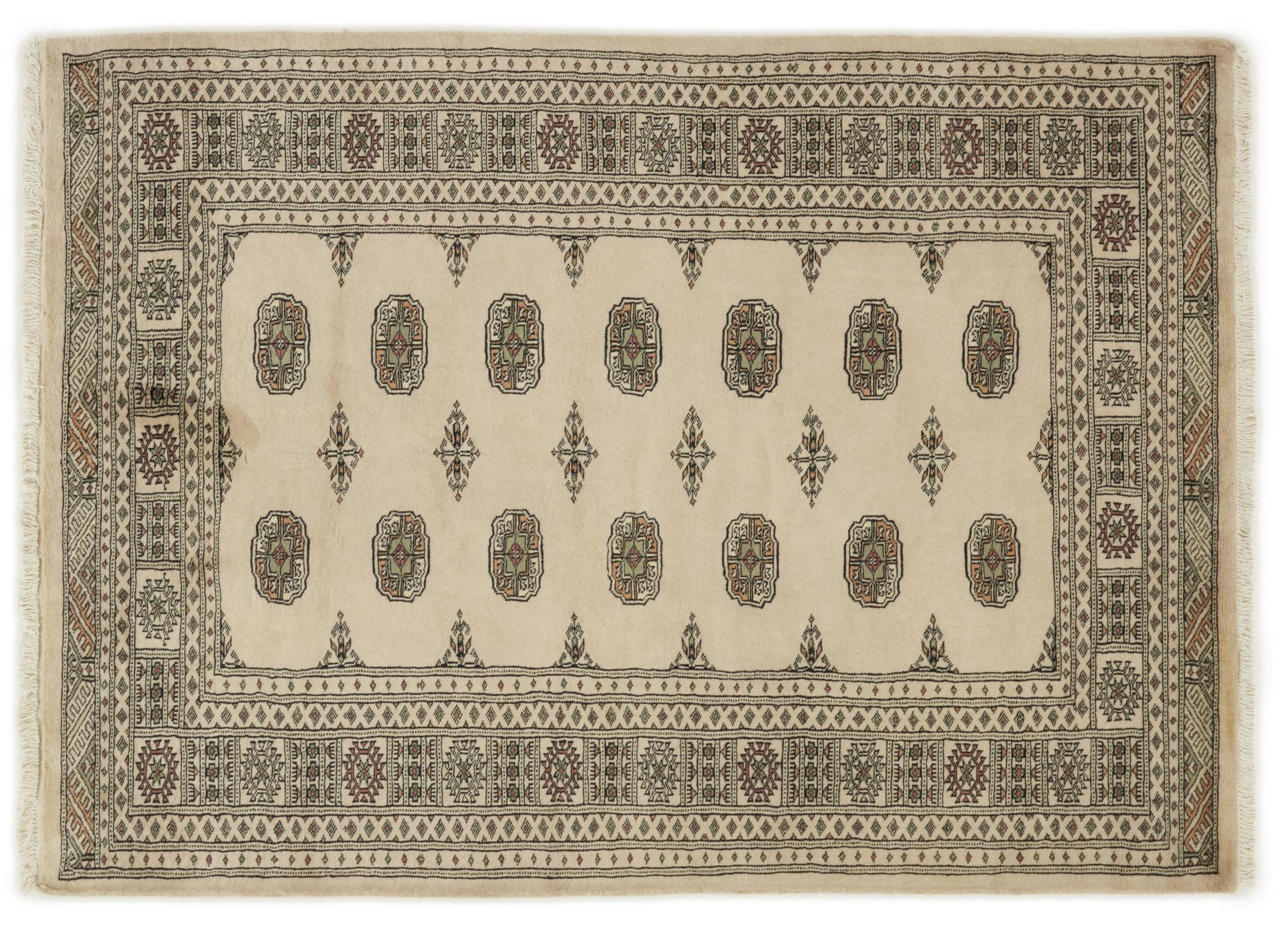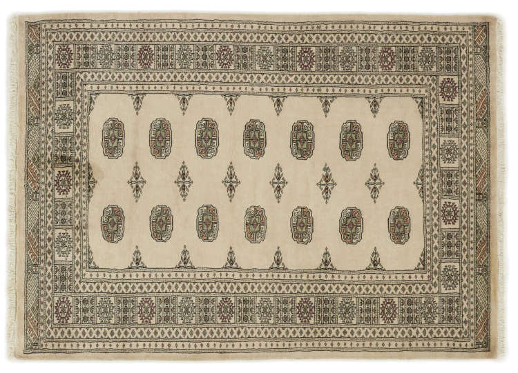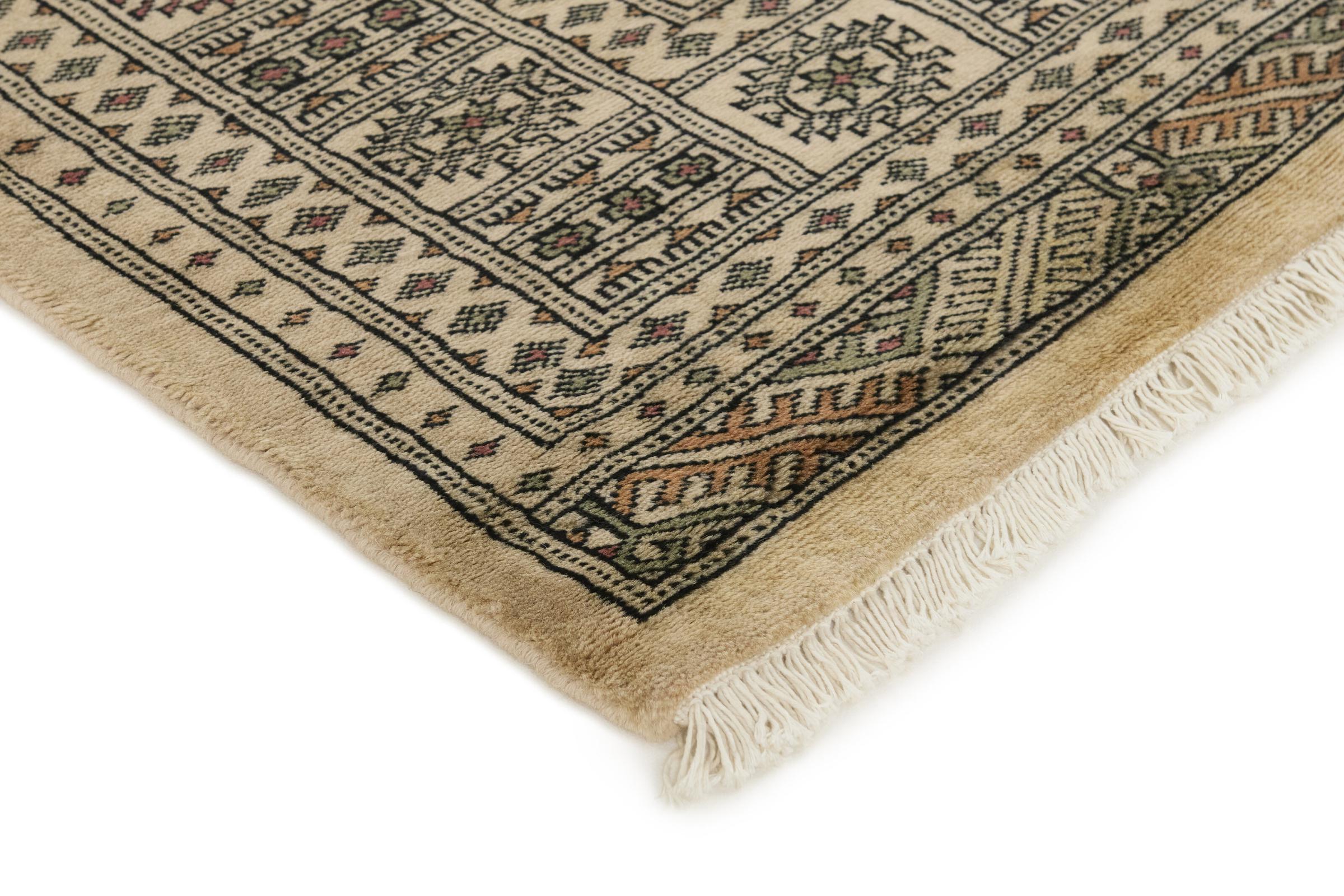 Una gran parte de la producción de alfombras pakistaníes tiene lugar en las ciudades de Lahore y Karachi y sus alrededores. Muchos de los tejedores de alfombras de esa época huyeron a Pakistán durante la guerra con la India y se establecieron allí. Hoy en día, se conocen especialmente las alfombras anudadas a mano de Pakistán Bukhara. Al igual que las alfombras orientales afganas, las alfombras paquistaníes también son de colores oscuros y en su mayoría tienen tonos rojos. También el conocido patrón de pata de elefante (patrón octogonal repetido) se puede encontrar en un pakistaní.