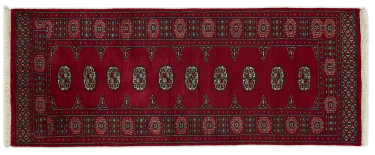 Una gran parte de la producción de alfombras pakistaníes tiene lugar en las ciudades de Lahore y Karachi y sus alrededores. Muchos de los tejedores de alfombras de esa época huyeron a Pakistán durante la guerra con la India y se establecieron allí. Hoy en día, se conocen especialmente las alfombras anudadas a mano de Pakistán Bukhara. Al igual que las alfombras orientales afganas, las alfombras paquistaníes también son de colores oscuros y en su mayoría tienen tonos rojos. También el conocido patrón de pata de elefante (patrón octogonal repetido) se puede encontrar en un pakistaní.