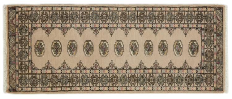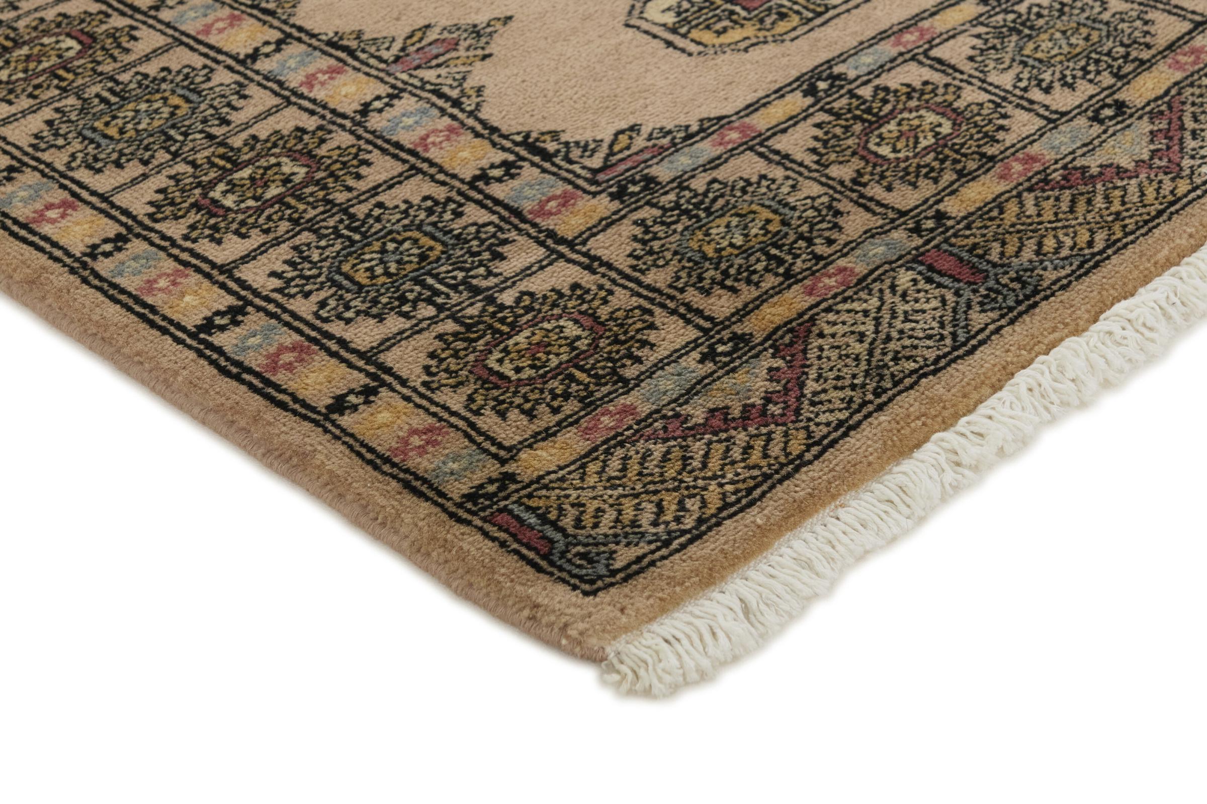 Una gran parte de la producción de alfombras pakistaníes tiene lugar en las ciudades de Lahore y Karachi y sus alrededores. Muchos de los tejedores de alfombras de esa época huyeron a Pakistán durante la guerra con la India y se establecieron allí. Hoy en día, se conocen especialmente las alfombras anudadas a mano de Pakistán Bukhara. Al igual que las alfombras orientales afganas, las alfombras paquistaníes también son de colores oscuros y en su mayoría tienen tonos rojos. También el conocido patrón de pata de elefante (patrón octogonal repetido) se puede encontrar en un pakistaní.