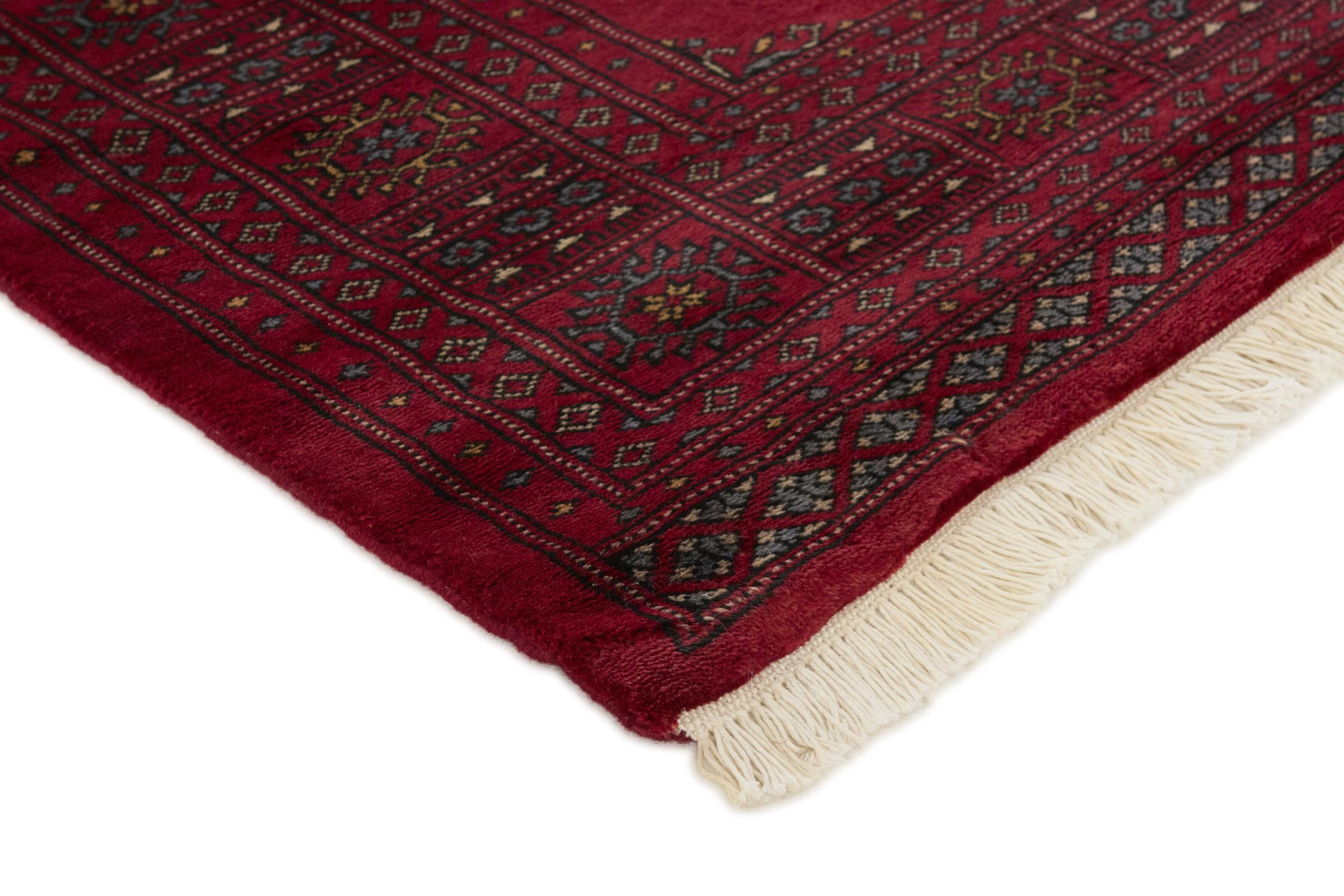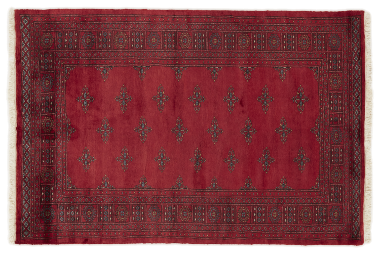 Una gran parte de la producción de alfombras pakistaníes tiene lugar en las ciudades de Lahore y Karachi y sus alrededores. Muchos de los tejedores de alfombras de esa época huyeron a Pakistán durante la guerra con la India y se establecieron allí. Hoy en día, se conocen especialmente las alfombras anudadas a mano de Pakistán Bukhara. Al igual que las alfombras orientales afganas, las alfombras paquistaníes también son de colores oscuros y en su mayoría tienen tonos rojos. También el conocido patrón de pata de elefante (patrón octogonal repetido) se puede encontrar en un pakistaní.