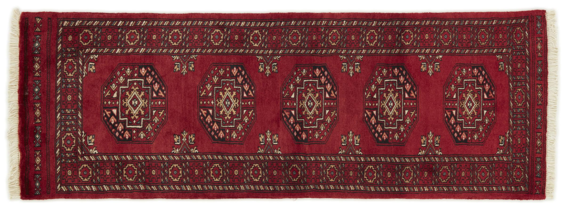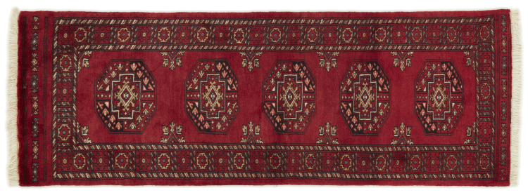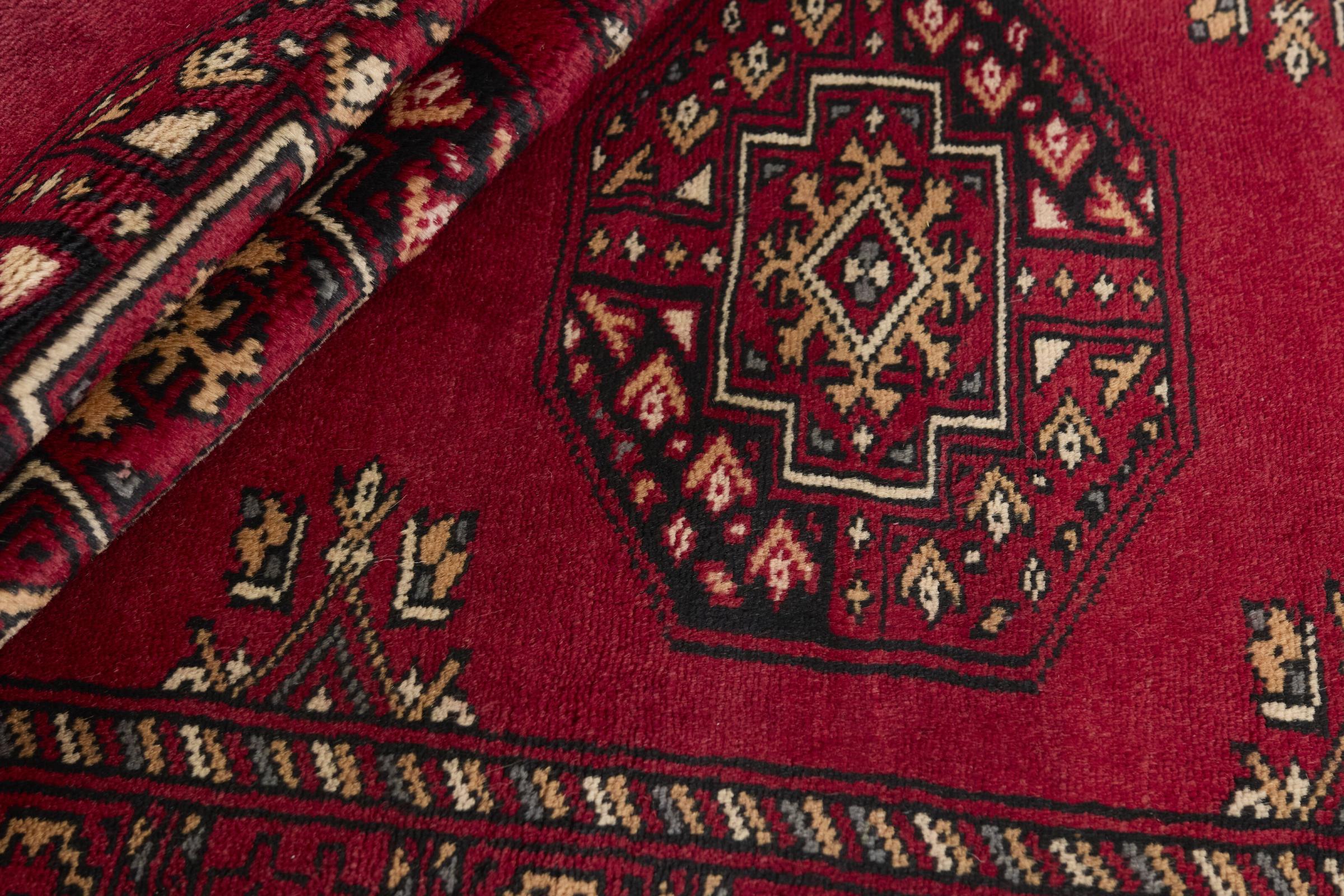 Una gran parte de la producción de alfombras pakistaníes tiene lugar en las ciudades de Lahore y Karachi y sus alrededores. Muchos de los tejedores de alfombras de esa época huyeron a Pakistán durante la guerra con la India y se establecieron allí. Hoy en día, se conocen especialmente las alfombras anudadas a mano de Pakistán Bukhara. Al igual que las alfombras orientales afganas, las alfombras paquistaníes también son de colores oscuros y en su mayoría tienen tonos rojos. También el conocido patrón de pata de elefante (patrón octogonal repetido) se puede encontrar en un pakistaní.