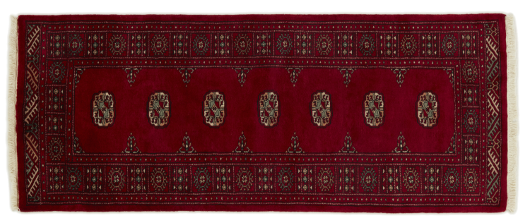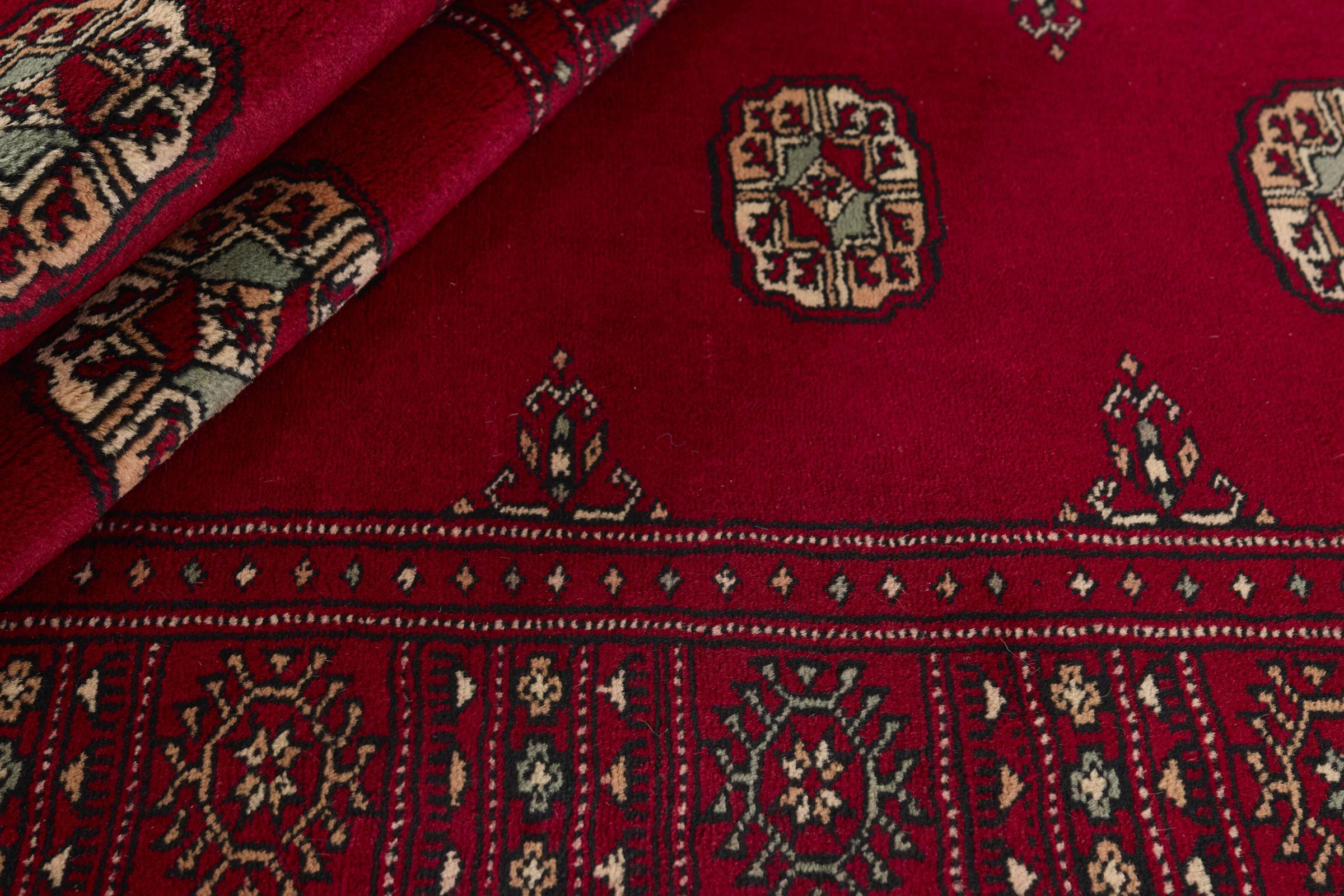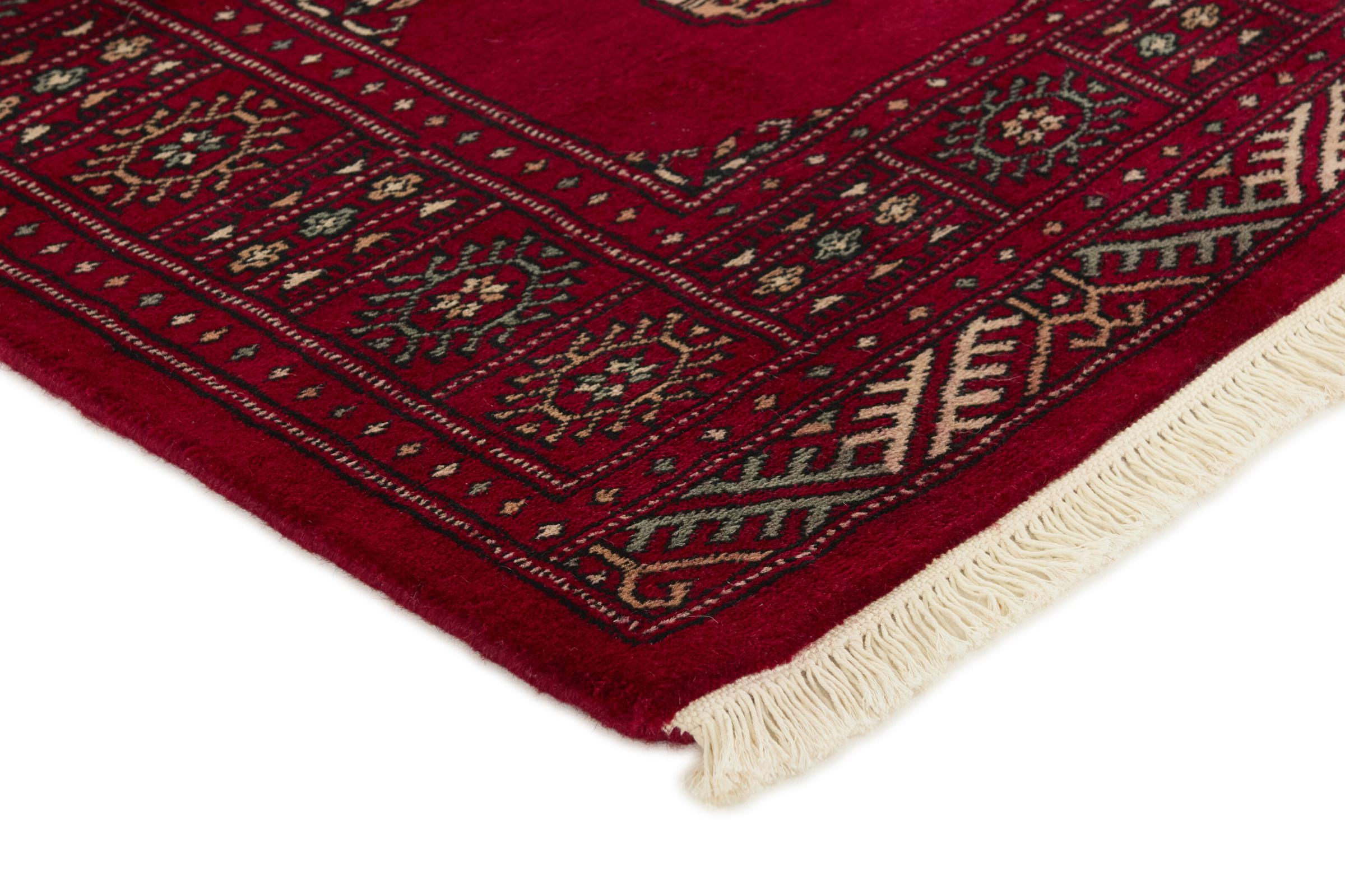 Una gran parte de la producción de alfombras pakistaníes tiene lugar en las ciudades de Lahore y Karachi y sus alrededores. Muchos de los tejedores de alfombras de esa época huyeron a Pakistán durante la guerra con la India y se establecieron allí. Hoy en día, se conocen especialmente las alfombras anudadas a mano de Pakistán Bukhara. Al igual que las alfombras orientales afganas, las alfombras paquistaníes también son de colores oscuros y en su mayoría tienen tonos rojos. También el conocido patrón de pata de elefante (patrón octogonal repetido) se puede encontrar en un pakistaní.