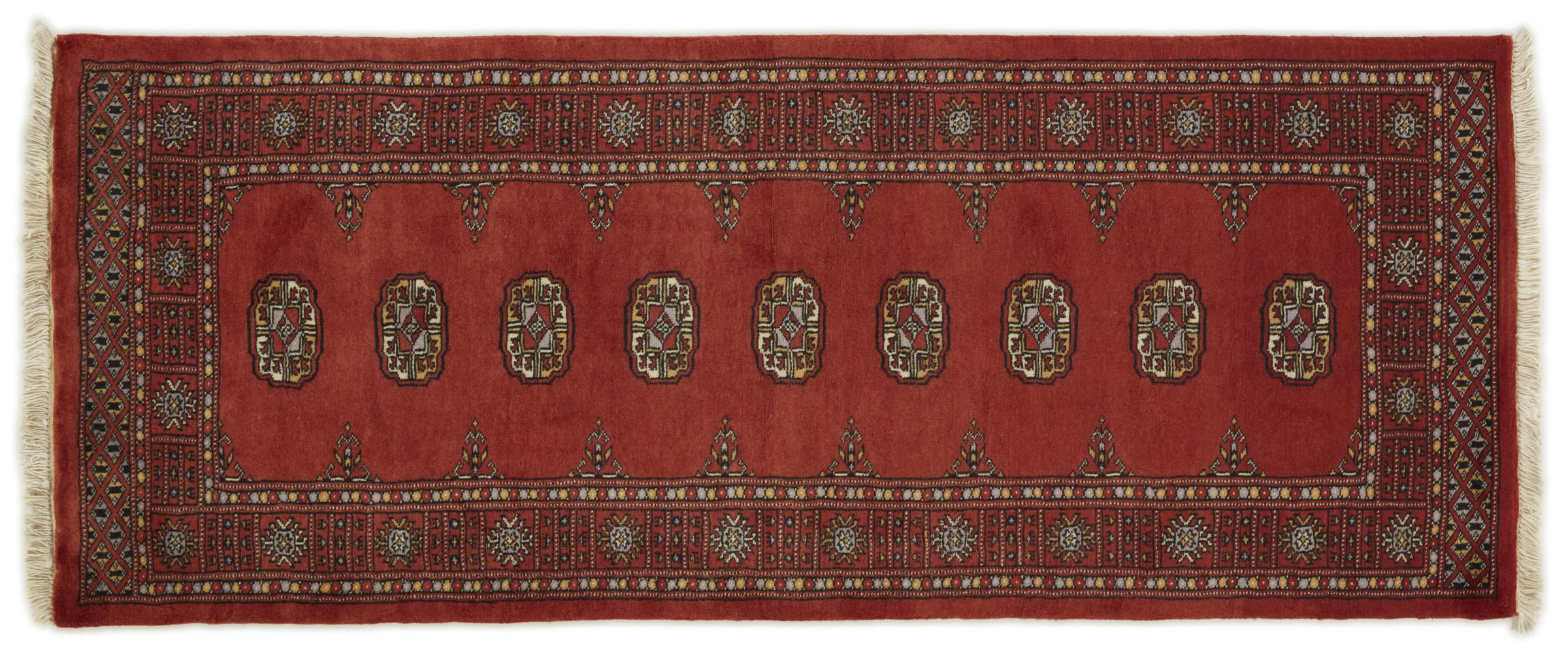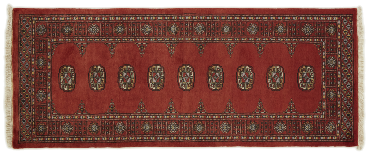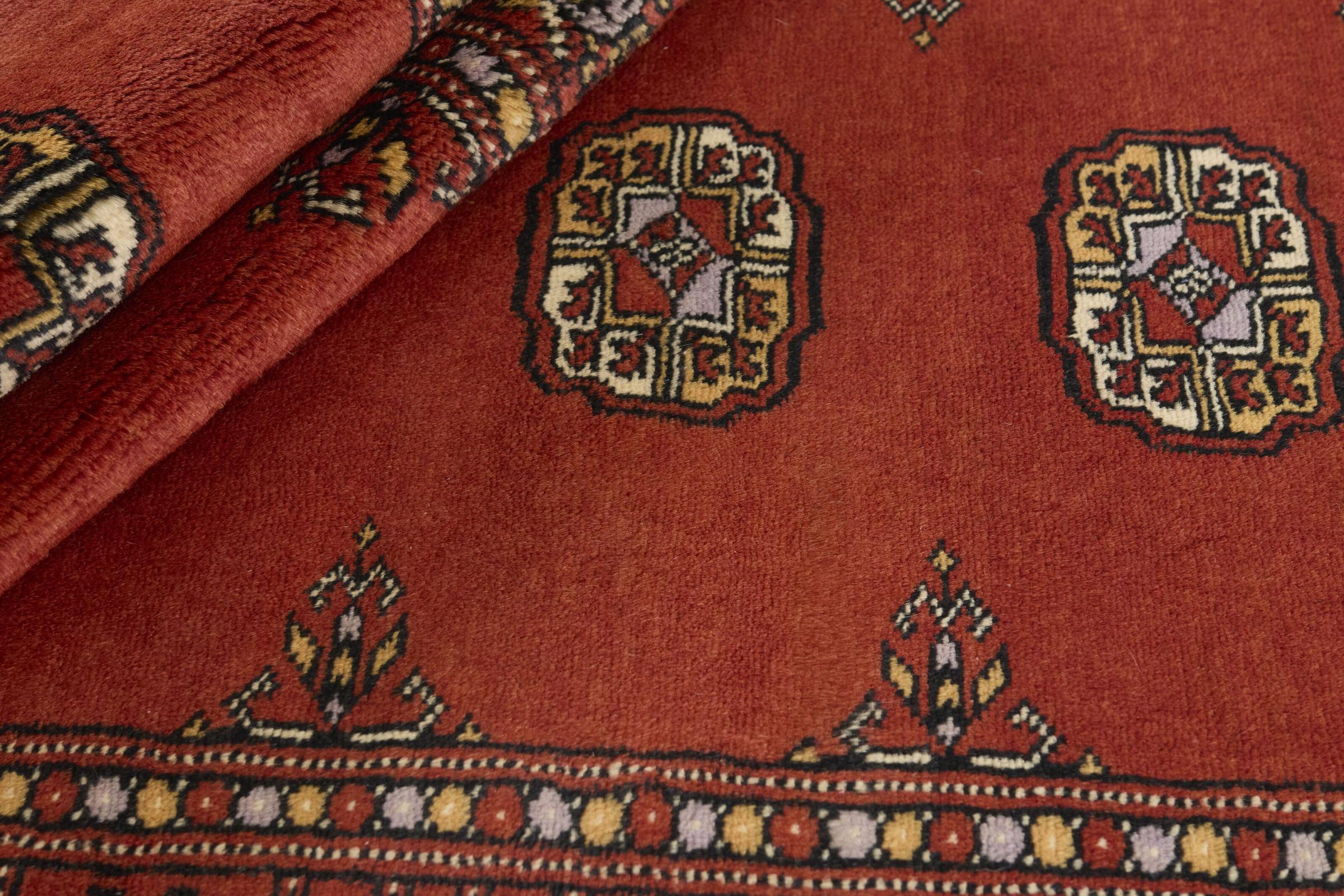 Una gran parte de la producción de alfombras pakistaníes tiene lugar en las ciudades de Lahore y Karachi y sus alrededores. Muchos de los tejedores de alfombras de esa época huyeron a Pakistán durante la guerra con la India y se establecieron allí. Hoy en día, se conocen especialmente las alfombras anudadas a mano de Pakistán Bukhara. Al igual que las alfombras orientales afganas, las alfombras paquistaníes también son de colores oscuros y en su mayoría tienen tonos rojos. También el conocido patrón de pata de elefante (patrón octogonal repetido) se puede encontrar en un pakistaní.