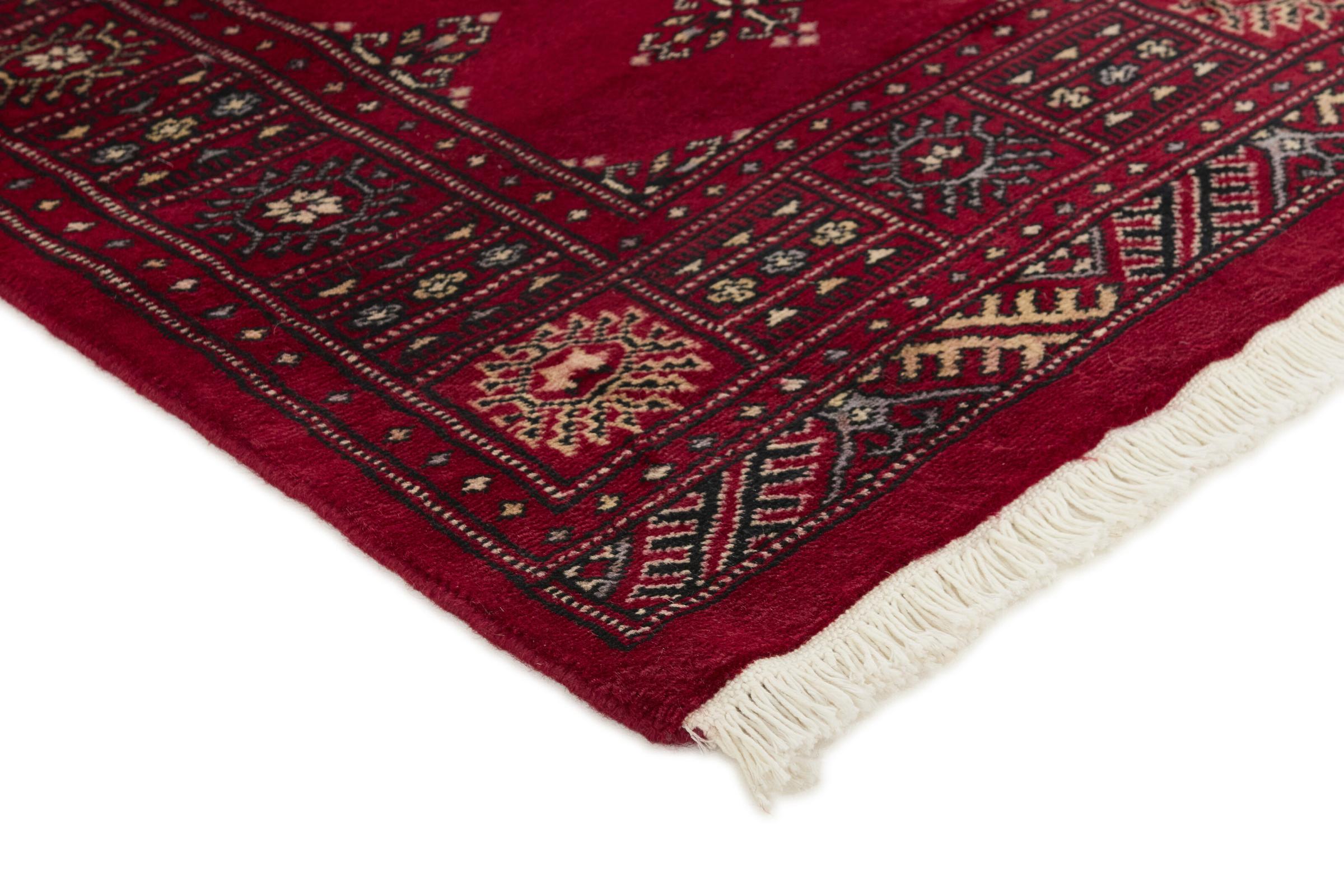 Una gran parte de la producción de alfombras pakistaníes tiene lugar en las ciudades de Lahore y Karachi y sus alrededores. Muchos de los tejedores de alfombras de esa época huyeron a Pakistán durante la guerra con la India y se establecieron allí. Hoy en día, se conocen especialmente las alfombras anudadas a mano de Pakistán Bukhara. Al igual que las alfombras orientales afganas, las alfombras paquistaníes también son de colores oscuros y en su mayoría tienen tonos rojos. También el conocido patrón de pata de elefante (patrón octogonal repetido) se puede encontrar en un pakistaní.