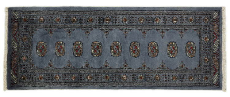 Una gran parte de la producción de alfombras pakistaníes tiene lugar en las ciudades de Lahore y Karachi y sus alrededores. Muchos de los tejedores de alfombras de esa época huyeron a Pakistán durante la guerra con la India y se establecieron allí. Hoy en día, se conocen especialmente las alfombras anudadas a mano de Pakistán Bukhara. Al igual que las alfombras orientales afganas, las alfombras paquistaníes también son de colores oscuros y en su mayoría tienen tonos rojos. También el conocido patrón de pata de elefante (patrón octogonal repetido) se puede encontrar en un pakistaní.