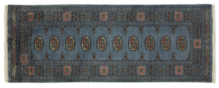 Una gran parte de la producción de alfombras pakistaníes tiene lugar en las ciudades de Lahore y Karachi y sus alrededores. Muchos de los tejedores de alfombras de esa época huyeron a Pakistán durante la guerra con la India y se establecieron allí. Hoy en día, se conocen especialmente las alfombras anudadas a mano de Pakistán Bukhara. Al igual que las alfombras orientales afganas, las alfombras paquistaníes también son de colores oscuros y en su mayoría tienen tonos rojos. También el conocido patrón de pata de elefante (patrón octogonal repetido) se puede encontrar en un pakistaní.