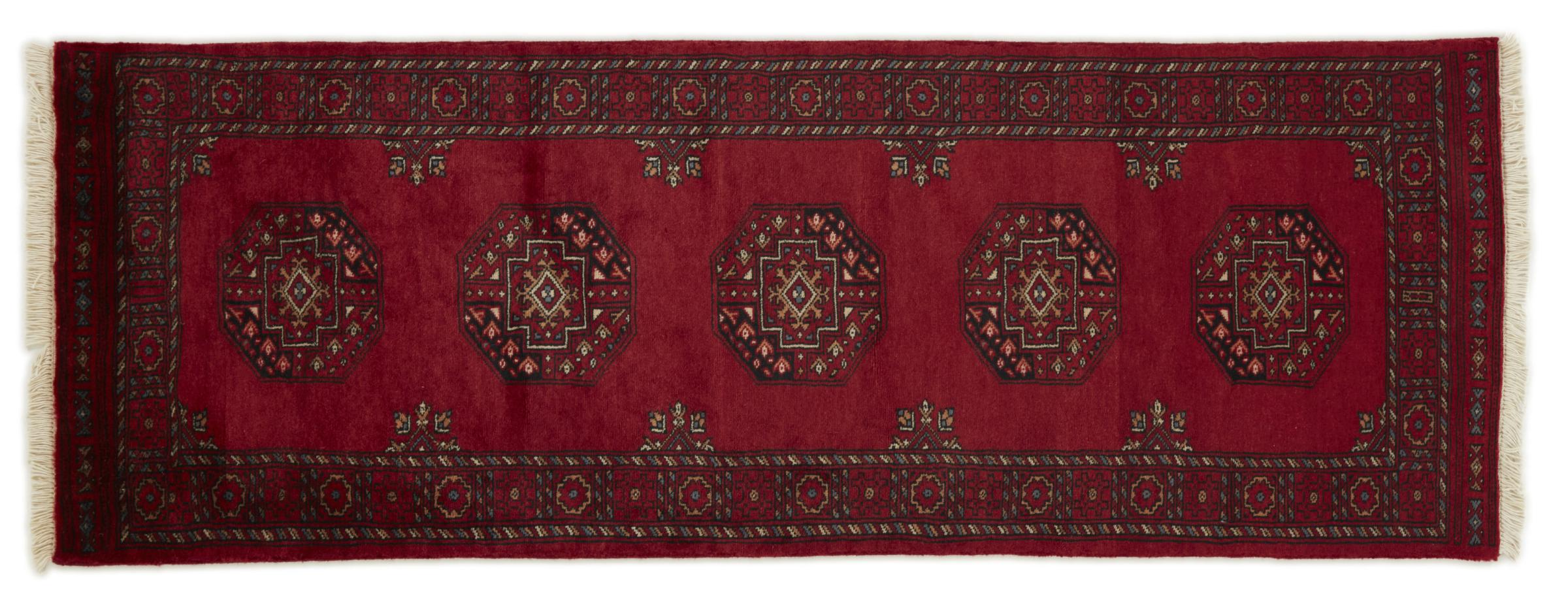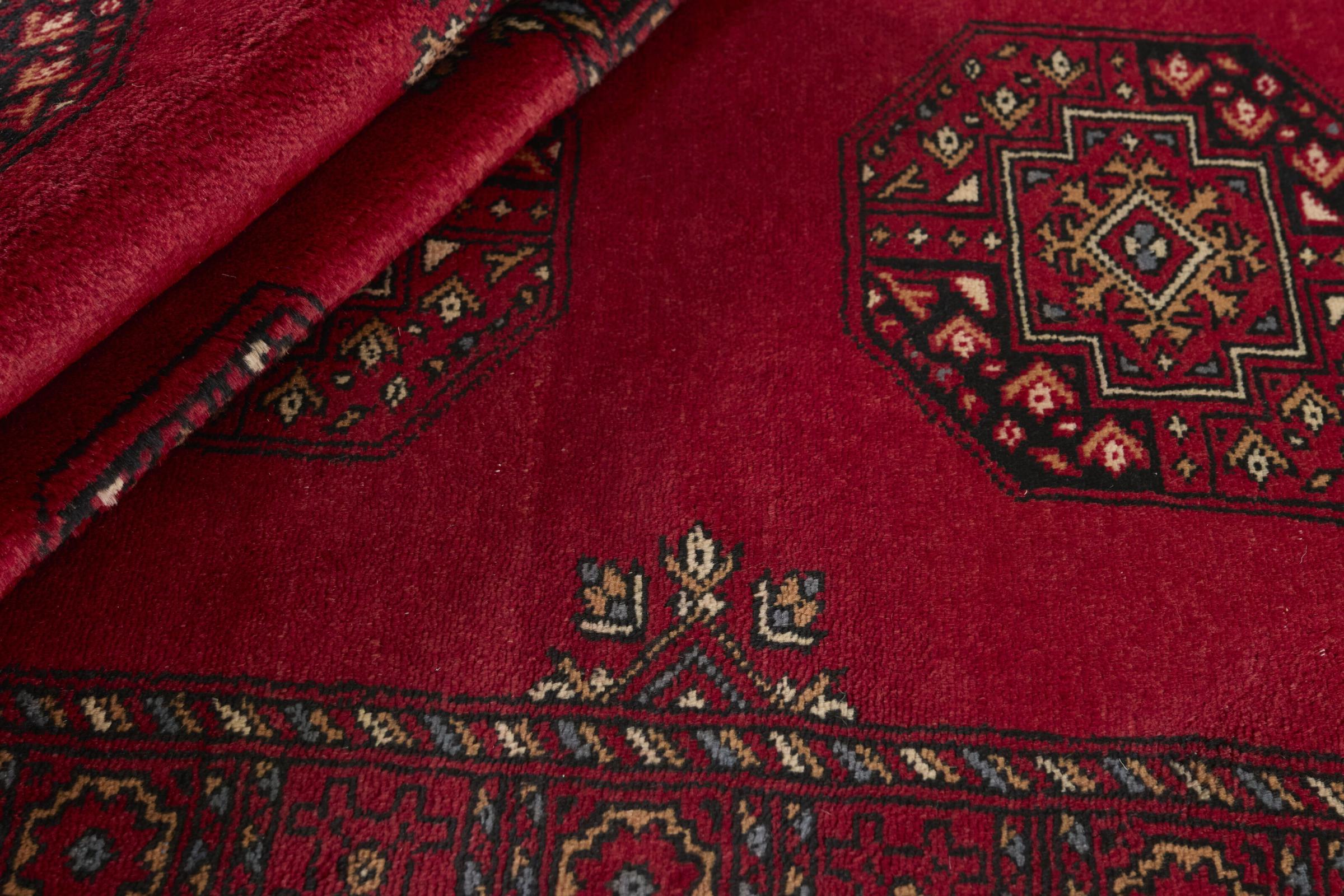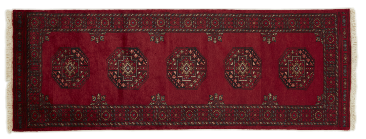 Una gran parte de la producción de alfombras pakistaníes tiene lugar en las ciudades de Lahore y Karachi y sus alrededores. Muchos de los tejedores de alfombras de esa época huyeron a Pakistán durante la guerra con la India y se establecieron allí. Hoy en día, se conocen especialmente las alfombras anudadas a mano de Pakistán Bukhara. Al igual que las alfombras orientales afganas, las alfombras paquistaníes también son de colores oscuros y en su mayoría tienen tonos rojos. También el conocido patrón de pata de elefante (patrón octogonal repetido) se puede encontrar en un pakistaní.