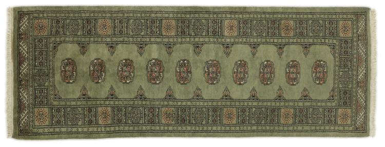 Una gran parte de la producción de alfombras pakistaníes tiene lugar en las ciudades de Lahore y Karachi y sus alrededores. Muchos de los tejedores de alfombras de esa época huyeron a Pakistán durante la guerra con la India y se establecieron allí. Hoy en día, se conocen especialmente las alfombras anudadas a mano de Pakistán Bukhara. Al igual que las alfombras orientales afganas, las alfombras paquistaníes también son de colores oscuros y en su mayoría tienen tonos rojos. También el conocido patrón de pata de elefante (patrón octogonal repetido) se puede encontrar en un pakistaní.