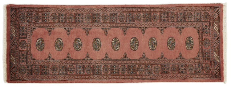 Una gran parte de la producción de alfombras pakistaníes tiene lugar en las ciudades de Lahore y Karachi y sus alrededores. Muchos de los tejedores de alfombras de esa época huyeron a Pakistán durante la guerra con la India y se establecieron allí. Hoy en día, se conocen especialmente las alfombras anudadas a mano de Pakistán Bukhara. Al igual que las alfombras orientales afganas, las alfombras paquistaníes también son de colores oscuros y en su mayoría tienen tonos rojos. También el conocido patrón de pata de elefante (patrón octogonal repetido) se puede encontrar en un pakistaní.