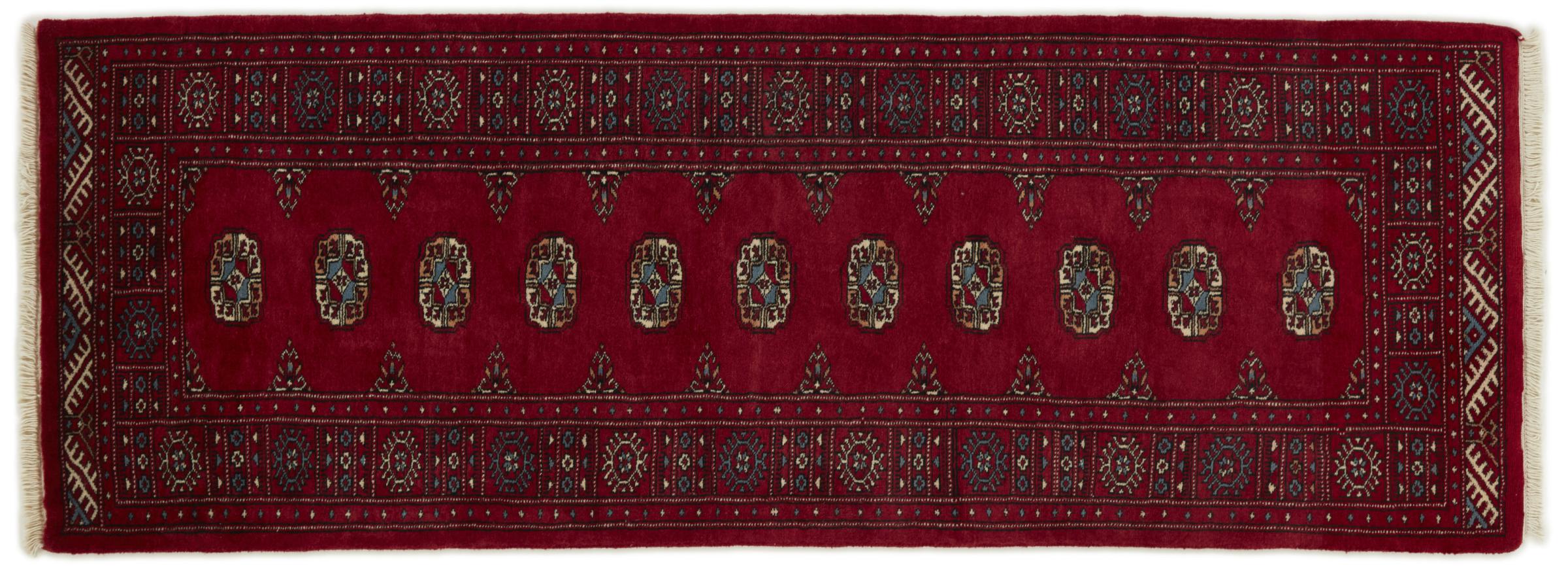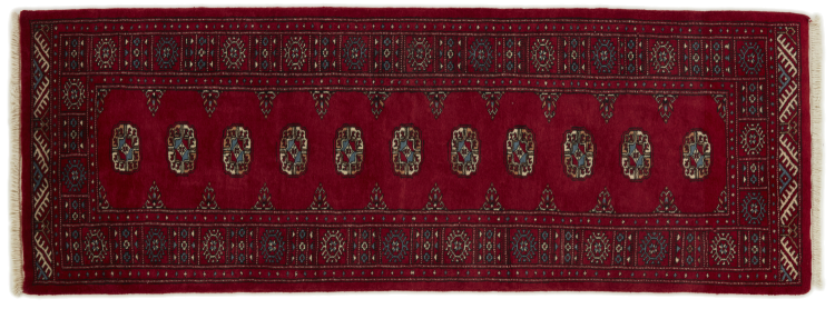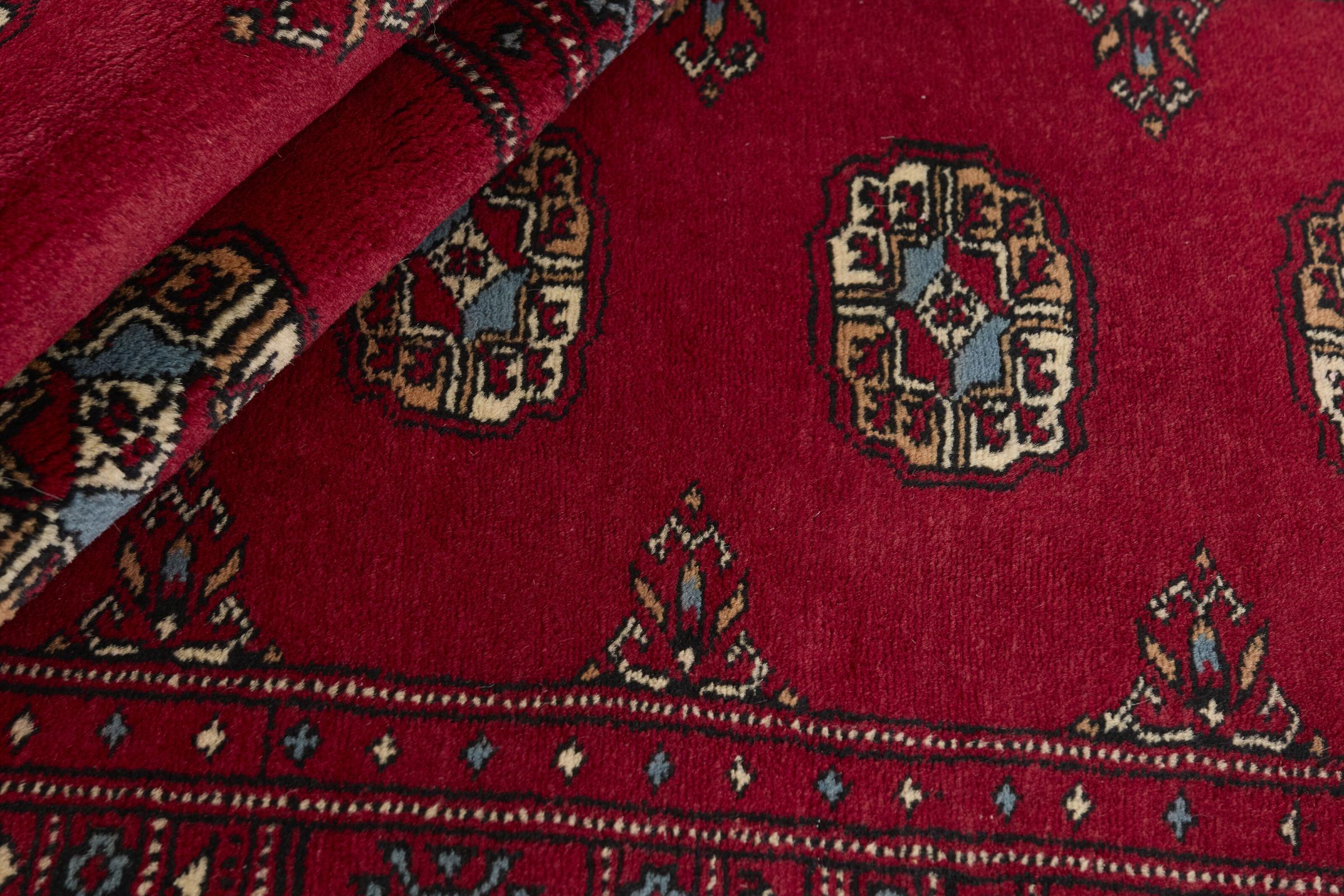 Una gran parte de la producción de alfombras pakistaníes tiene lugar en las ciudades de Lahore y Karachi y sus alrededores. Muchos de los tejedores de alfombras de esa época huyeron a Pakistán durante la guerra con la India y se establecieron allí. Hoy en día, se conocen especialmente las alfombras anudadas a mano de Pakistán Bukhara. Al igual que las alfombras orientales afganas, las alfombras paquistaníes también son de colores oscuros y en su mayoría tienen tonos rojos. También el conocido patrón de pata de elefante (patrón octogonal repetido) se puede encontrar en un pakistaní.