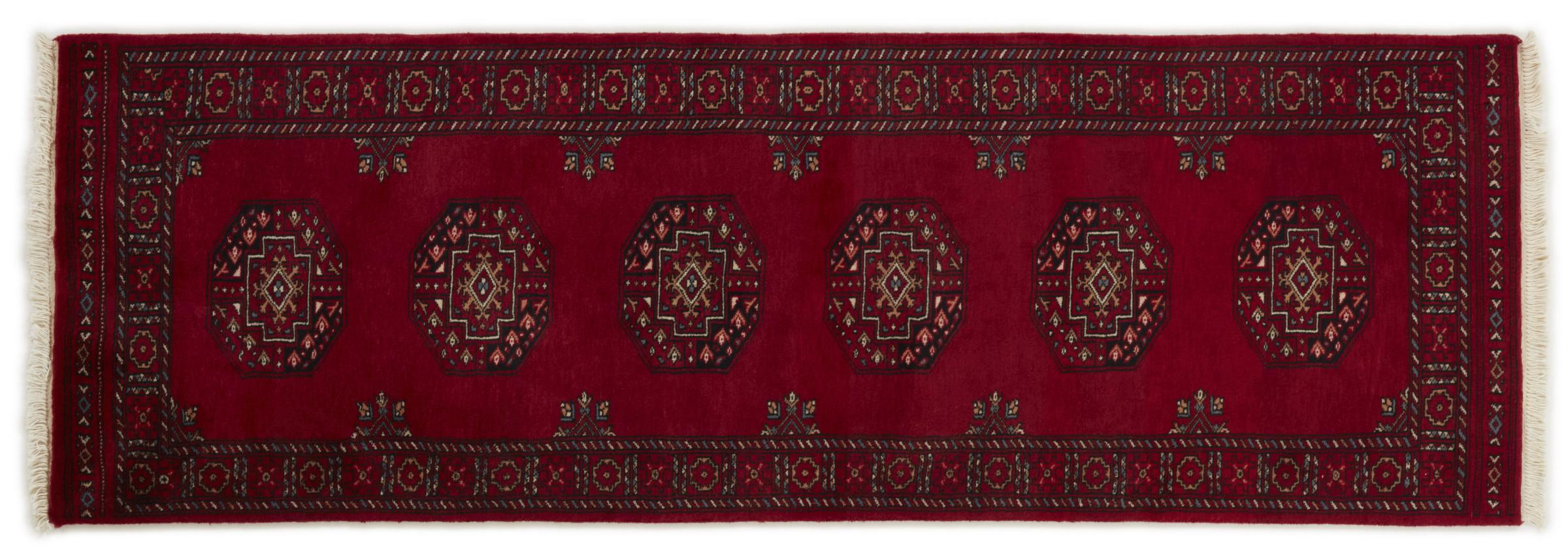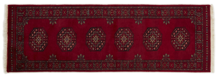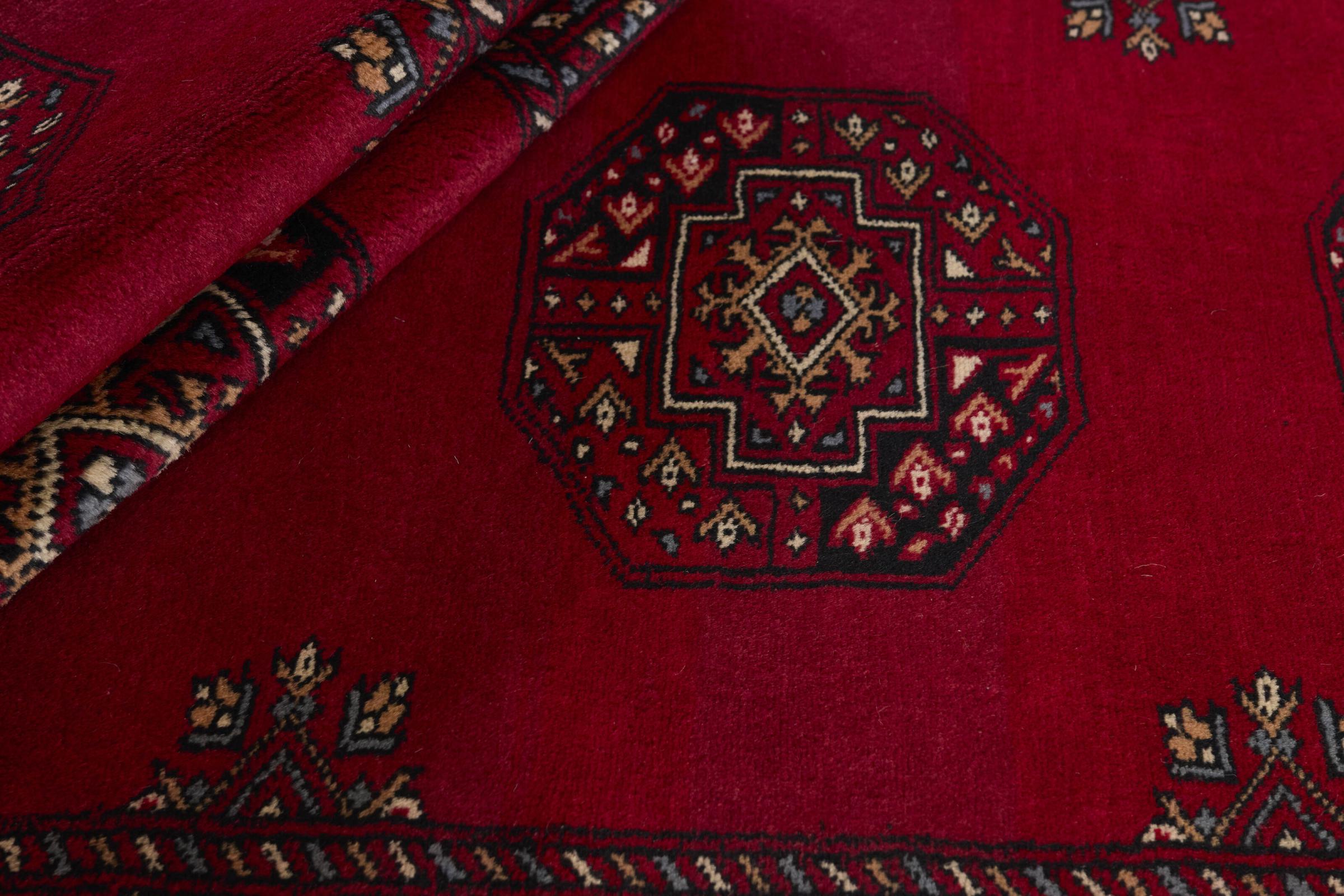 Una gran parte de la producción de alfombras pakistaníes tiene lugar en las ciudades de Lahore y Karachi y sus alrededores. Muchos de los tejedores de alfombras de esa época huyeron a Pakistán durante la guerra con la India y se establecieron allí. Hoy en día, se conocen especialmente las alfombras anudadas a mano de Pakistán Bukhara. Al igual que las alfombras orientales afganas, las alfombras paquistaníes también son de colores oscuros y en su mayoría tienen tonos rojos. También el conocido patrón de pata de elefante (patrón octogonal repetido) se puede encontrar en un pakistaní.