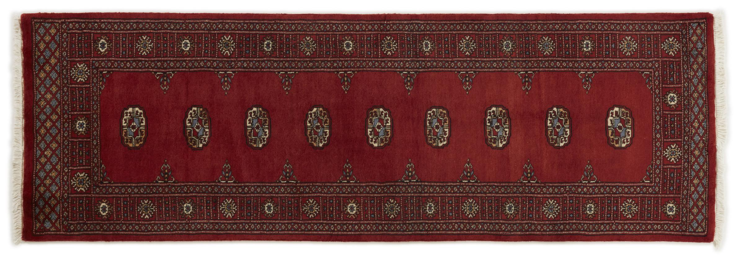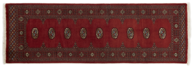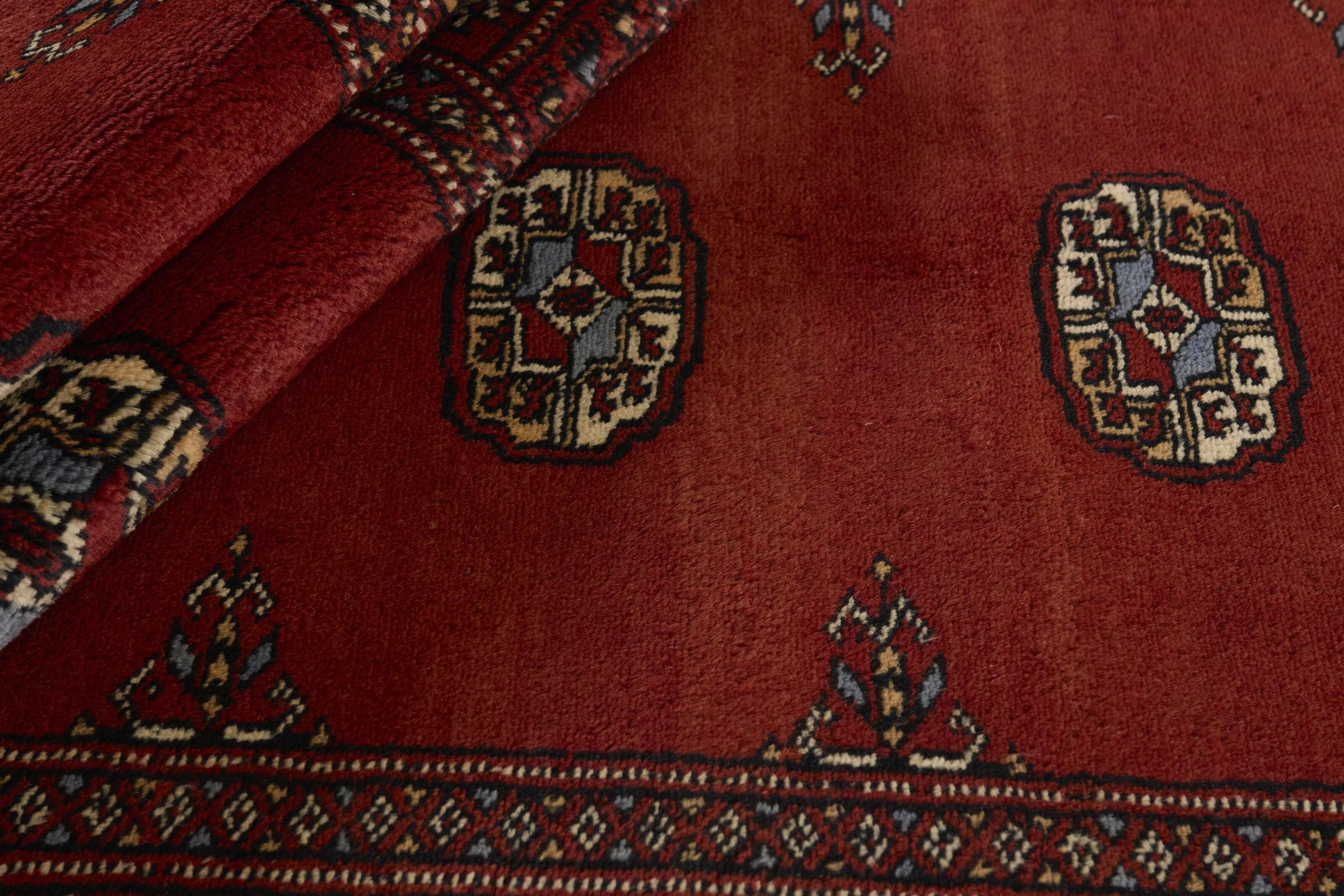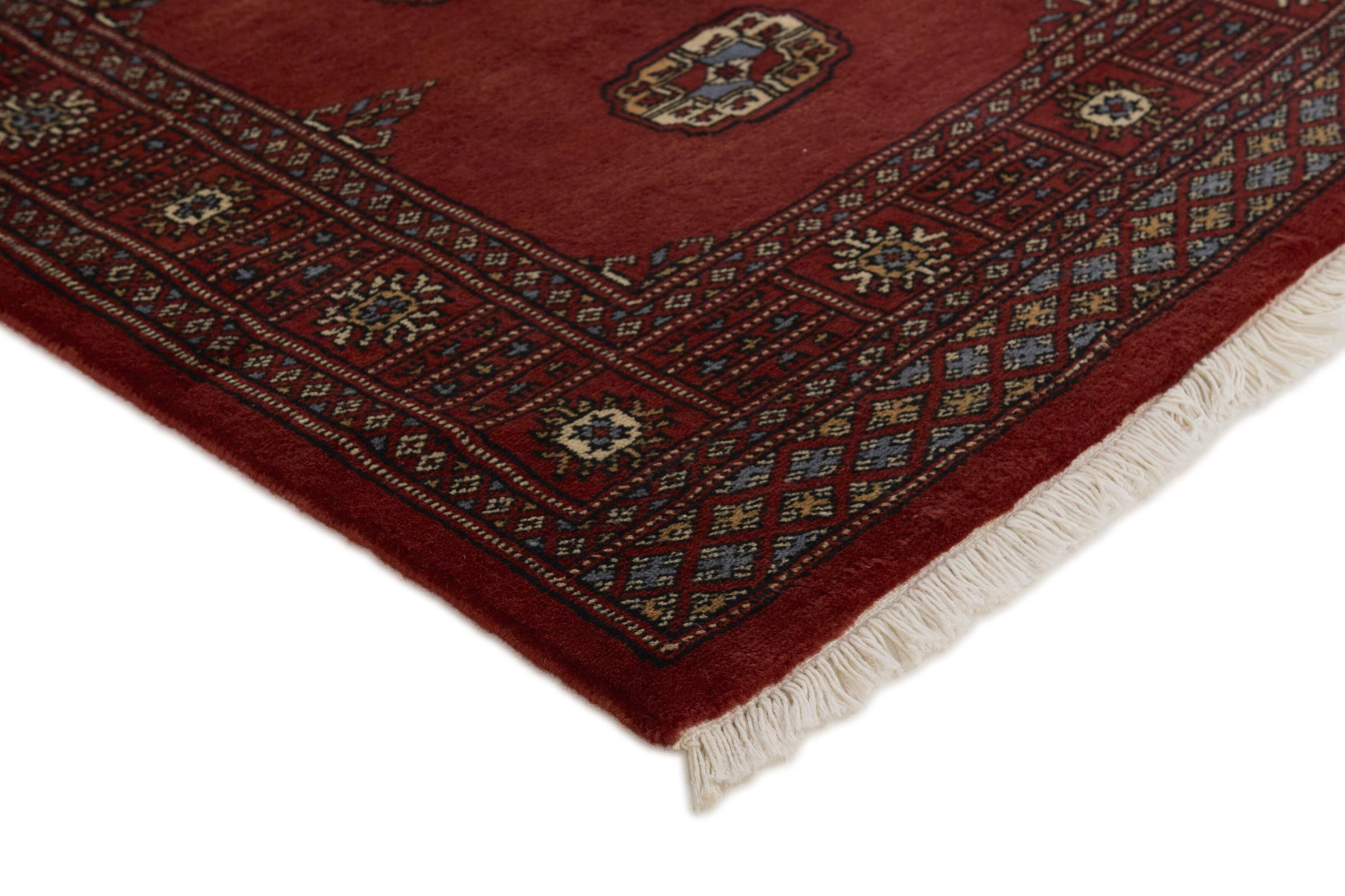 Una gran parte de la producción de alfombras pakistaníes tiene lugar en las ciudades de Lahore y Karachi y sus alrededores. Muchos de los tejedores de alfombras de esa época huyeron a Pakistán durante la guerra con la India y se establecieron allí. Hoy en día, se conocen especialmente las alfombras anudadas a mano de Pakistán Bukhara. Al igual que las alfombras orientales afganas, las alfombras paquistaníes también son de colores oscuros y en su mayoría tienen tonos rojos. También el conocido patrón de pata de elefante (patrón octogonal repetido) se puede encontrar en un pakistaní.