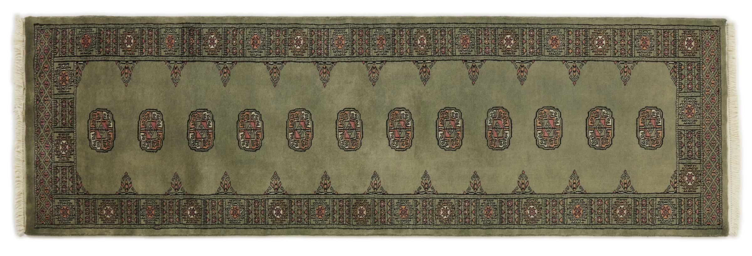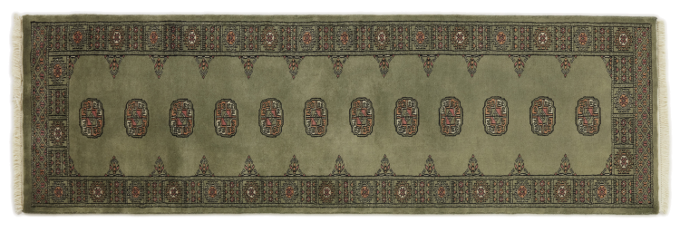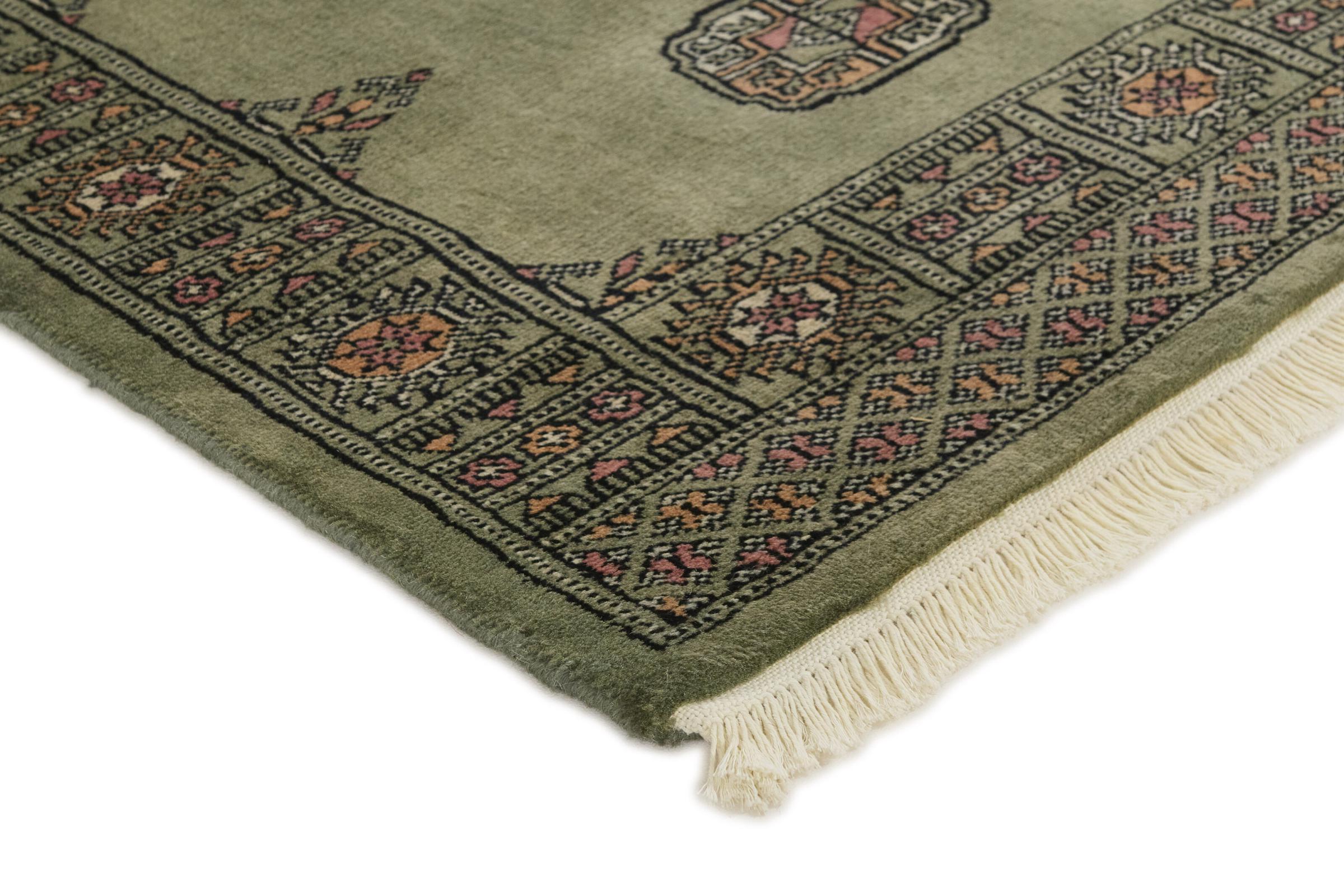 Una gran parte de la producción de alfombras pakistaníes tiene lugar en las ciudades de Lahore y Karachi y sus alrededores. Muchos de los tejedores de alfombras de esa época huyeron a Pakistán durante la guerra con la India y se establecieron allí. Hoy en día, se conocen especialmente las alfombras anudadas a mano de Pakistán Bukhara. Al igual que las alfombras orientales afganas, las alfombras paquistaníes también son de colores oscuros y en su mayoría tienen tonos rojos. También el conocido patrón de pata de elefante (patrón octogonal repetido) se puede encontrar en un pakistaní.