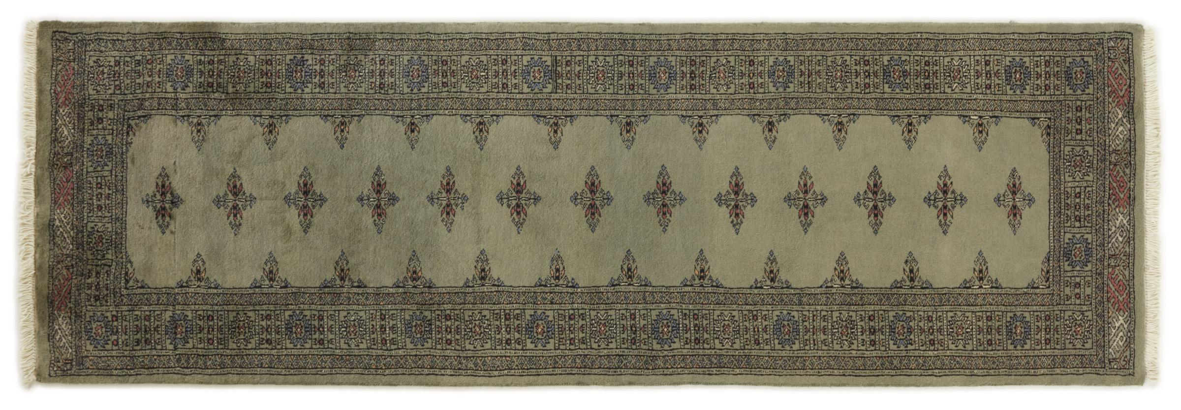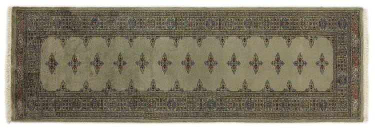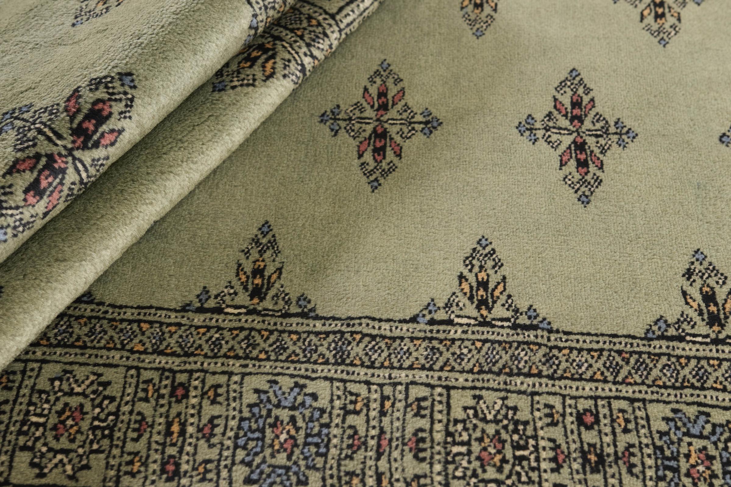 Una gran parte de la producción de alfombras pakistaníes tiene lugar en las ciudades de Lahore y Karachi y sus alrededores. Muchos de los tejedores de alfombras de esa época huyeron a Pakistán durante la guerra con la India y se establecieron allí. Hoy en día, se conocen especialmente las alfombras anudadas a mano de Pakistán Bukhara. Al igual que las alfombras orientales afganas, las alfombras paquistaníes también son de colores oscuros y en su mayoría tienen tonos rojos. También el conocido patrón de pata de elefante (patrón octogonal repetido) se puede encontrar en un pakistaní.
