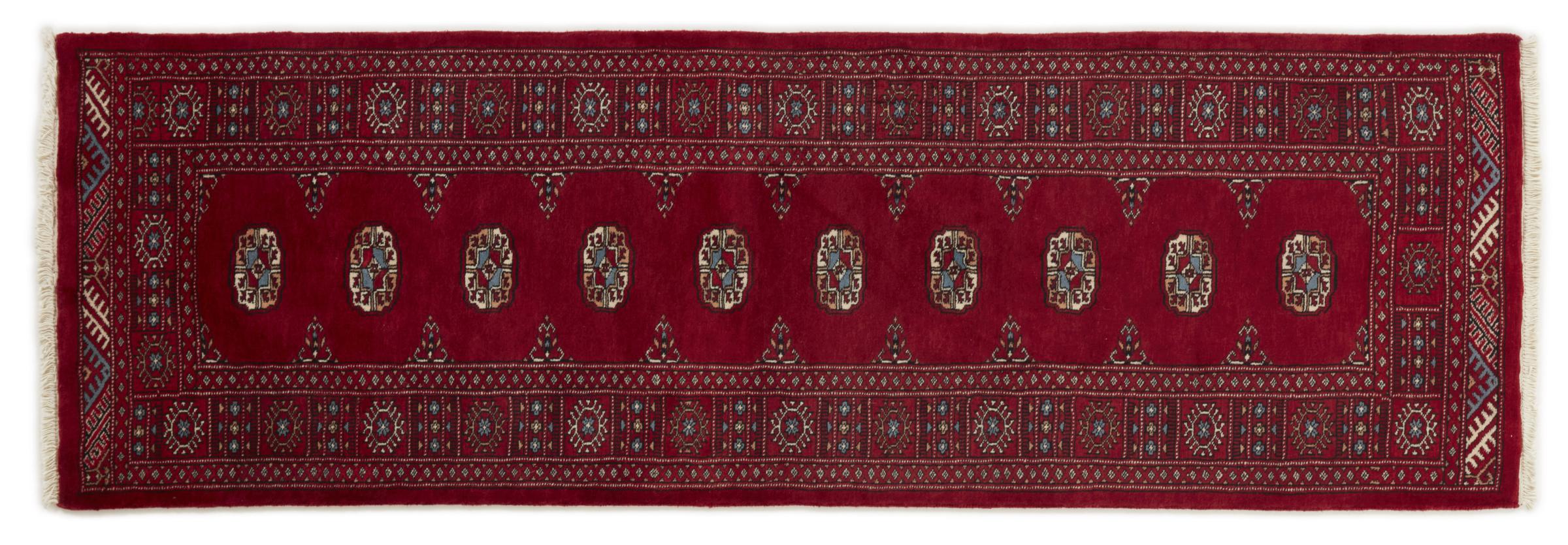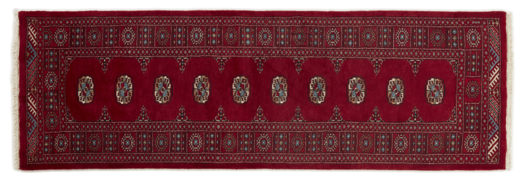 Una gran parte de la producción de alfombras pakistaníes tiene lugar en las ciudades de Lahore y Karachi y sus alrededores. Muchos de los tejedores de alfombras de esa época huyeron a Pakistán durante la guerra con la India y se establecieron allí. Hoy en día, se conocen especialmente las alfombras anudadas a mano de Pakistán Bukhara. Al igual que las alfombras orientales afganas, las alfombras paquistaníes también son de colores oscuros y en su mayoría tienen tonos rojos. También el conocido patrón de pata de elefante (patrón octogonal repetido) se puede encontrar en un pakistaní.