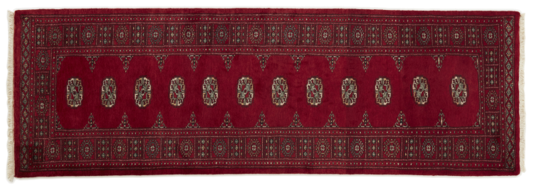 Una gran parte de la producción de alfombras pakistaníes tiene lugar en las ciudades de Lahore y Karachi y sus alrededores. Muchos de los tejedores de alfombras de esa época huyeron a Pakistán durante la guerra con la India y se establecieron allí. Hoy en día, se conocen especialmente las alfombras anudadas a mano de Pakistán Bukhara. Al igual que las alfombras orientales afganas, las alfombras paquistaníes también son de colores oscuros y en su mayoría tienen tonos rojos. También el conocido patrón de pata de elefante (patrón octogonal repetido) se puede encontrar en un pakistaní.