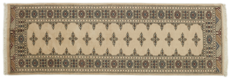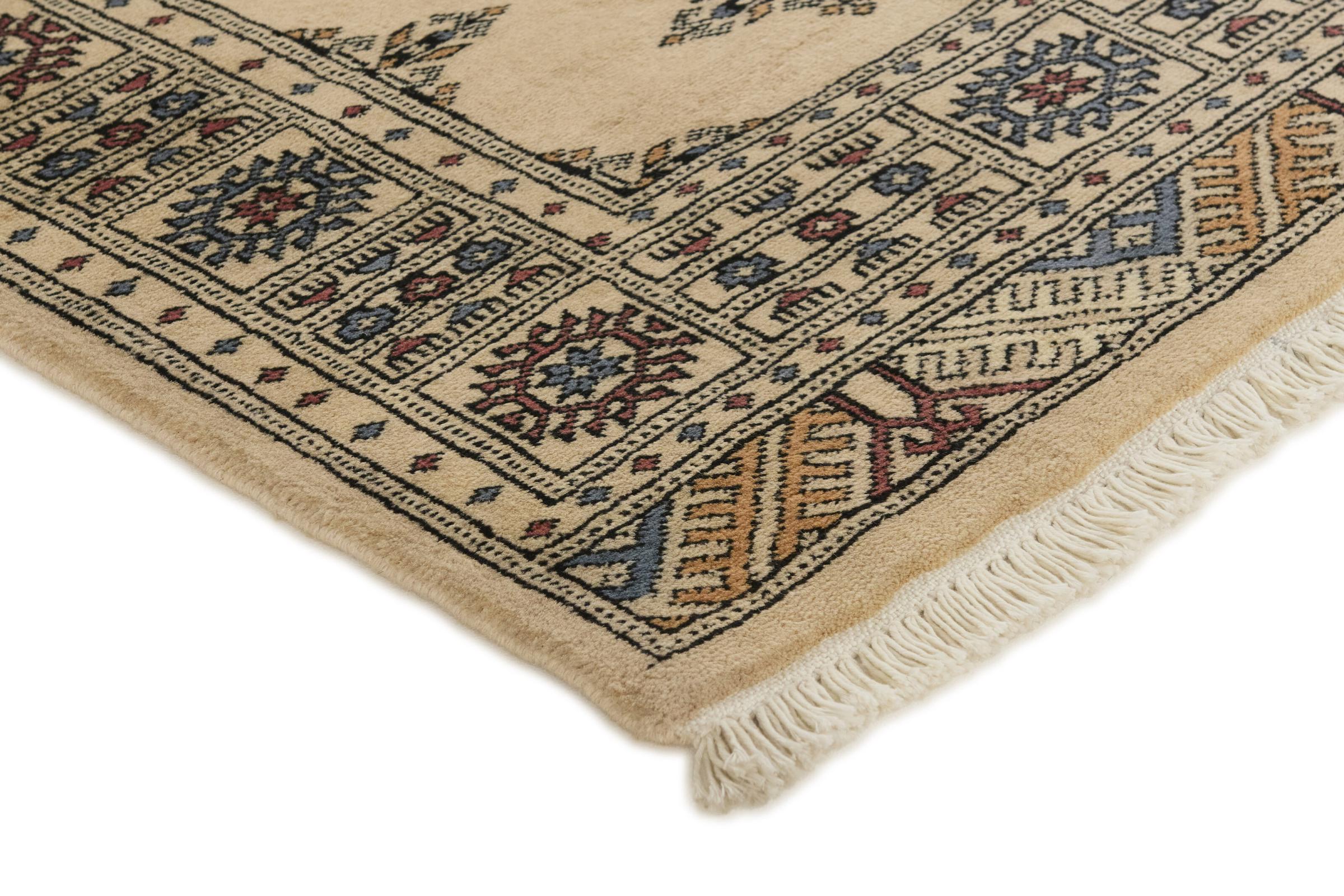 Una gran parte de la producción de alfombras pakistaníes tiene lugar en las ciudades de Lahore y Karachi y sus alrededores. Muchos de los tejedores de alfombras de esa época huyeron a Pakistán durante la guerra con la India y se establecieron allí. Hoy en día, se conocen especialmente las alfombras anudadas a mano de Pakistán Bukhara. Al igual que las alfombras orientales afganas, las alfombras paquistaníes también son de colores oscuros y en su mayoría tienen tonos rojos. También el conocido patrón de pata de elefante (patrón octogonal repetido) se puede encontrar en un pakistaní.