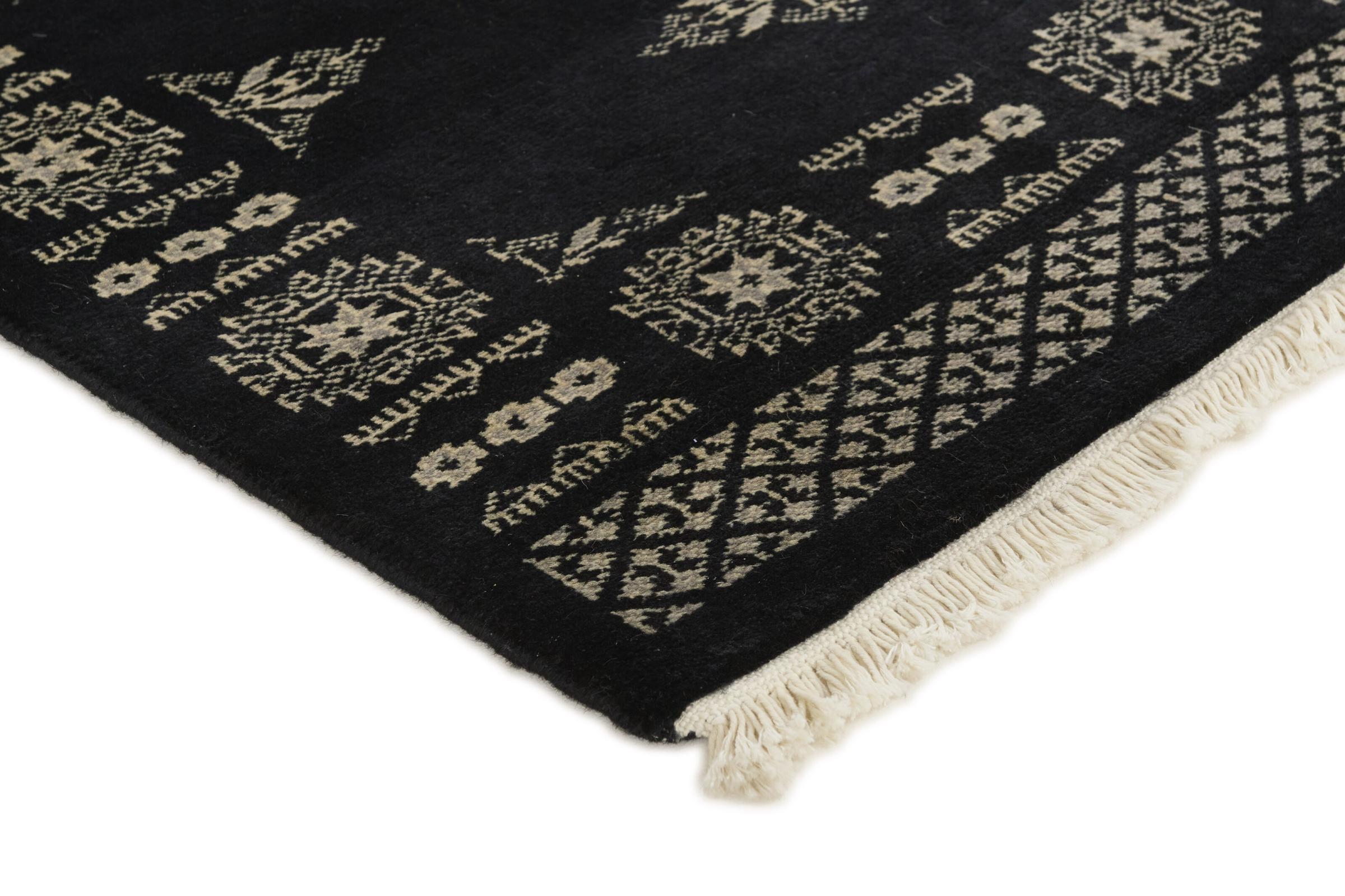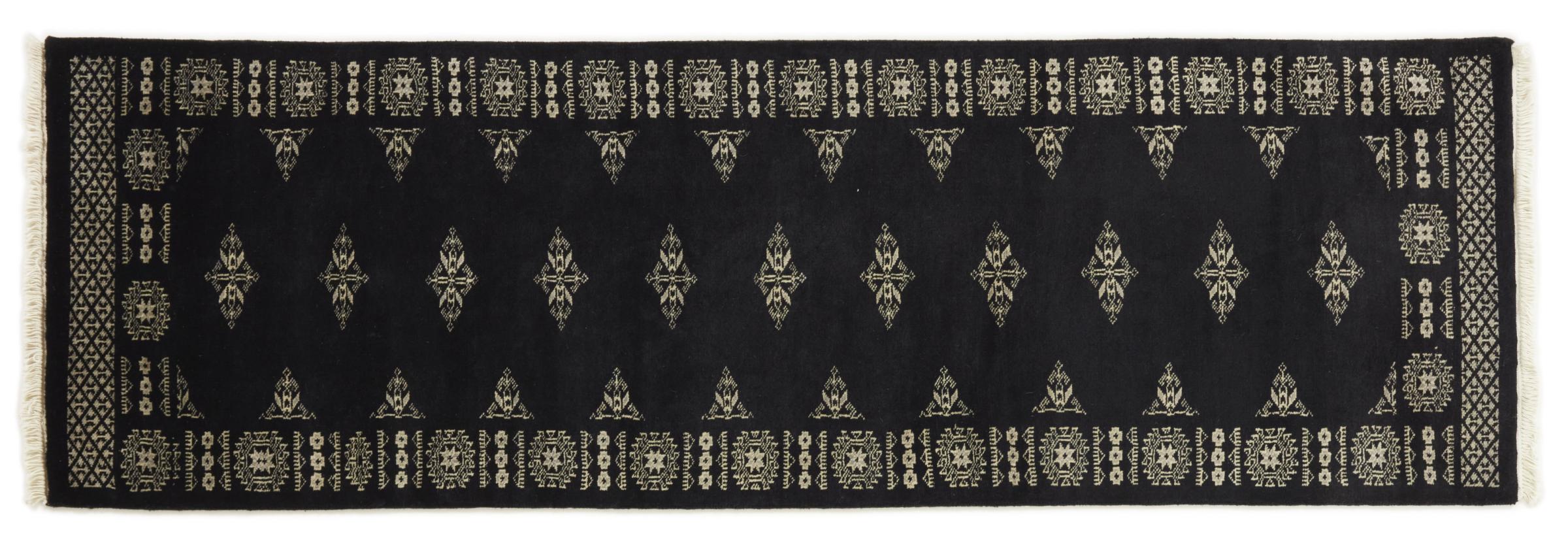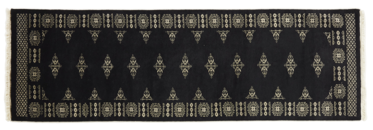 Una gran parte de la producción de alfombras pakistaníes tiene lugar en las ciudades de Lahore y Karachi y sus alrededores. Muchos de los tejedores de alfombras de esa época huyeron a Pakistán durante la guerra con la India y se establecieron allí. Hoy en día, se conocen especialmente las alfombras anudadas a mano de Pakistán Bukhara. Al igual que las alfombras orientales afganas, las alfombras paquistaníes también son de colores oscuros y en su mayoría tienen tonos rojos. También el conocido patrón de pata de elefante (patrón octogonal repetido) se puede encontrar en un pakistaní.