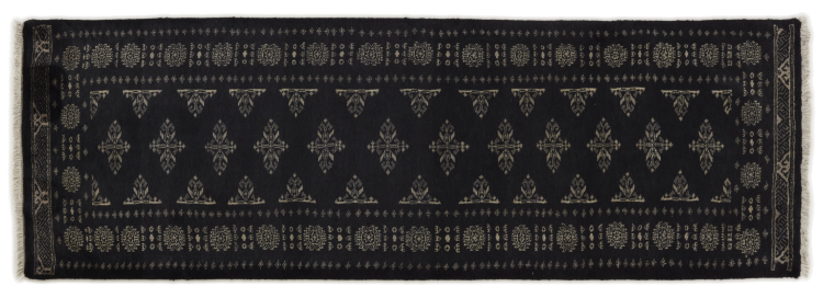 Una gran parte de la producción de alfombras pakistaníes tiene lugar en las ciudades de Lahore y Karachi y sus alrededores. Muchos de los tejedores de alfombras de esa época huyeron a Pakistán durante la guerra con la India y se establecieron allí. Hoy en día, se conocen especialmente las alfombras anudadas a mano de Pakistán Bukhara. Al igual que las alfombras orientales afganas, las alfombras paquistaníes también son de colores oscuros y en su mayoría tienen tonos rojos. También el conocido patrón de pata de elefante (patrón octogonal repetido) se puede encontrar en un pakistaní.
