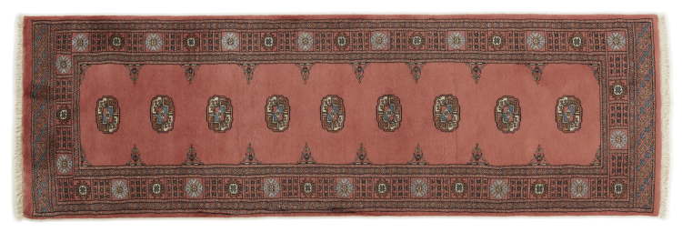 Una gran parte de la producción de alfombras pakistaníes tiene lugar en las ciudades de Lahore y Karachi y sus alrededores. Muchos de los tejedores de alfombras de esa época huyeron a Pakistán durante la guerra con la India y se establecieron allí. Hoy en día, se conocen especialmente las alfombras anudadas a mano de Pakistán Bukhara. Al igual que las alfombras orientales afganas, las alfombras paquistaníes también son de colores oscuros y en su mayoría tienen tonos rojos. También el conocido patrón de pata de elefante (patrón octogonal repetido) se puede encontrar en un pakistaní.