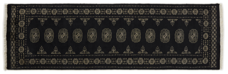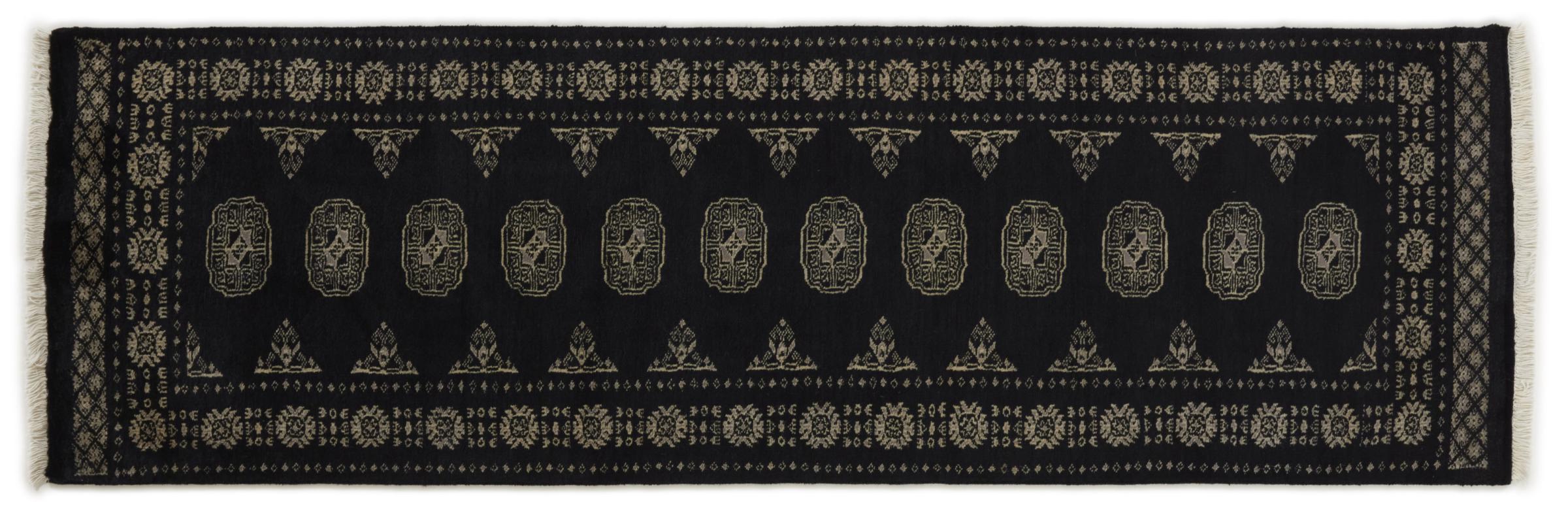 Una gran parte de la producción de alfombras pakistaníes tiene lugar en las ciudades de Lahore y Karachi y sus alrededores. Muchos de los tejedores de alfombras de esa época huyeron a Pakistán durante la guerra con la India y se establecieron allí. Hoy en día, se conocen especialmente las alfombras anudadas a mano de Pakistán Bukhara. Al igual que las alfombras orientales afganas, las alfombras paquistaníes también son de colores oscuros y en su mayoría tienen tonos rojos. También el conocido patrón de pata de elefante (patrón octogonal repetido) se puede encontrar en un pakistaní.