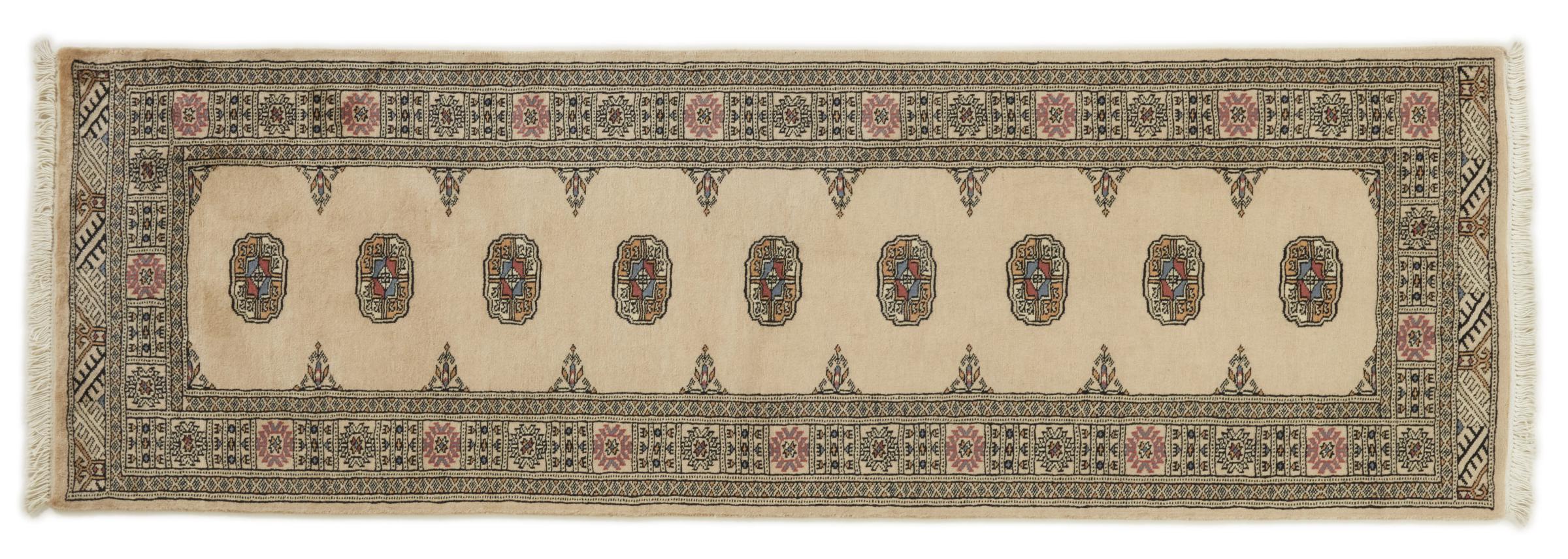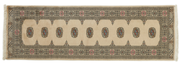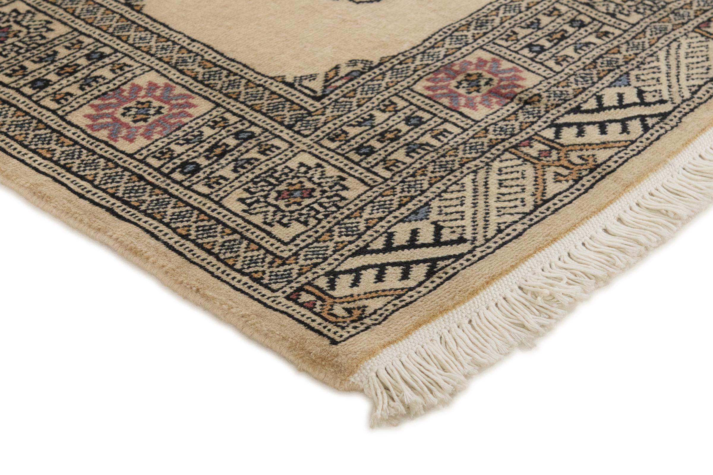 Una gran parte de la producción de alfombras pakistaníes tiene lugar en las ciudades de Lahore y Karachi y sus alrededores. Muchos de los tejedores de alfombras de esa época huyeron a Pakistán durante la guerra con la India y se establecieron allí. Hoy en día, se conocen especialmente las alfombras anudadas a mano de Pakistán Bukhara. Al igual que las alfombras orientales afganas, las alfombras paquistaníes también son de colores oscuros y en su mayoría tienen tonos rojos. También el conocido patrón de pata de elefante (patrón octogonal repetido) se puede encontrar en un pakistaní.