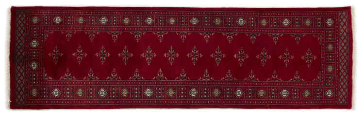 Una gran parte de la producción de alfombras pakistaníes tiene lugar en las ciudades de Lahore y Karachi y sus alrededores. Muchos de los tejedores de alfombras de esa época huyeron a Pakistán durante la guerra con la India y se establecieron allí. Hoy en día, se conocen especialmente las alfombras anudadas a mano de Pakistán Bukhara. Al igual que las alfombras orientales afganas, las alfombras paquistaníes también son de colores oscuros y en su mayoría tienen tonos rojos. También el conocido patrón de pata de elefante (patrón octogonal repetido) se puede encontrar en un pakistaní.
