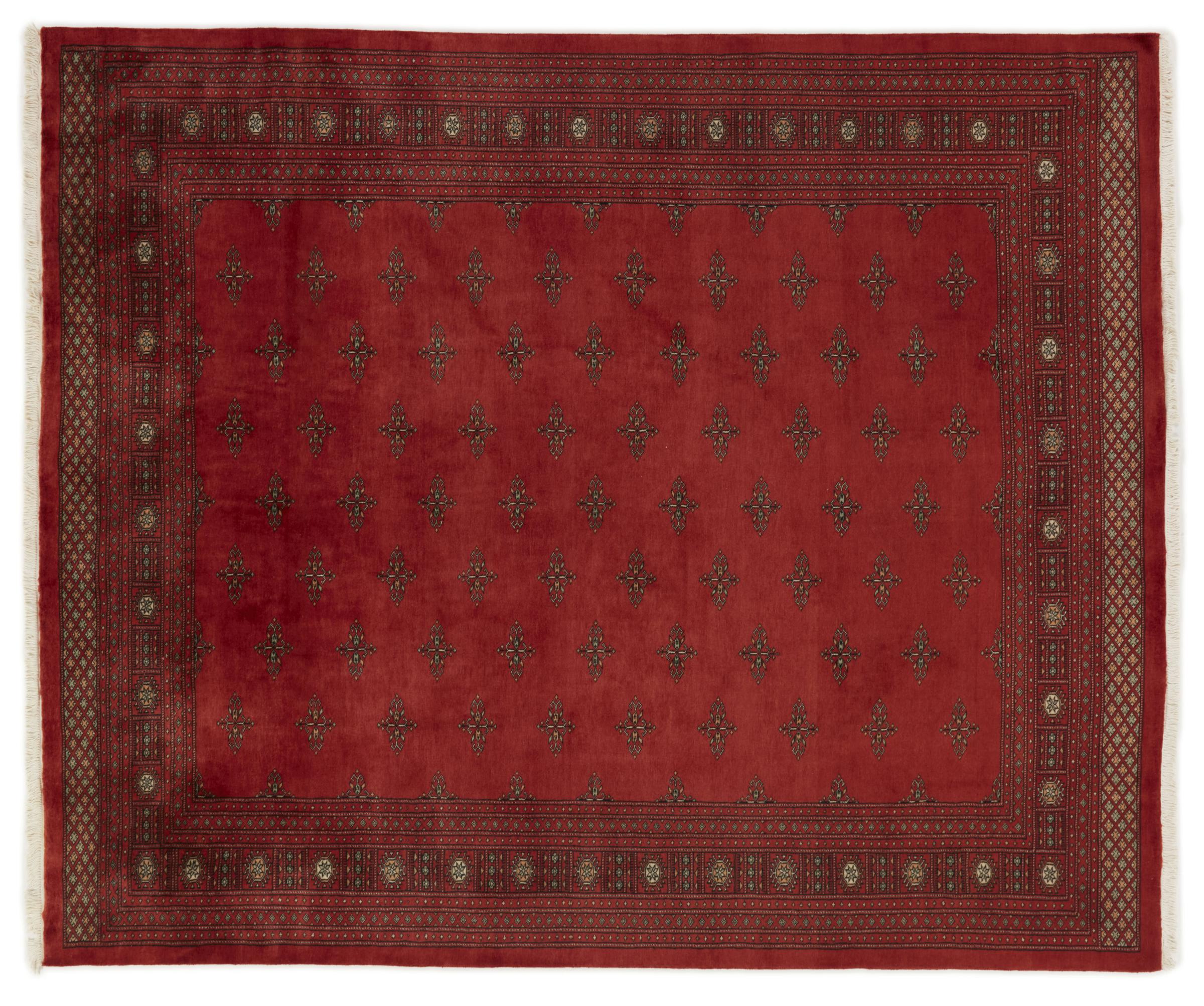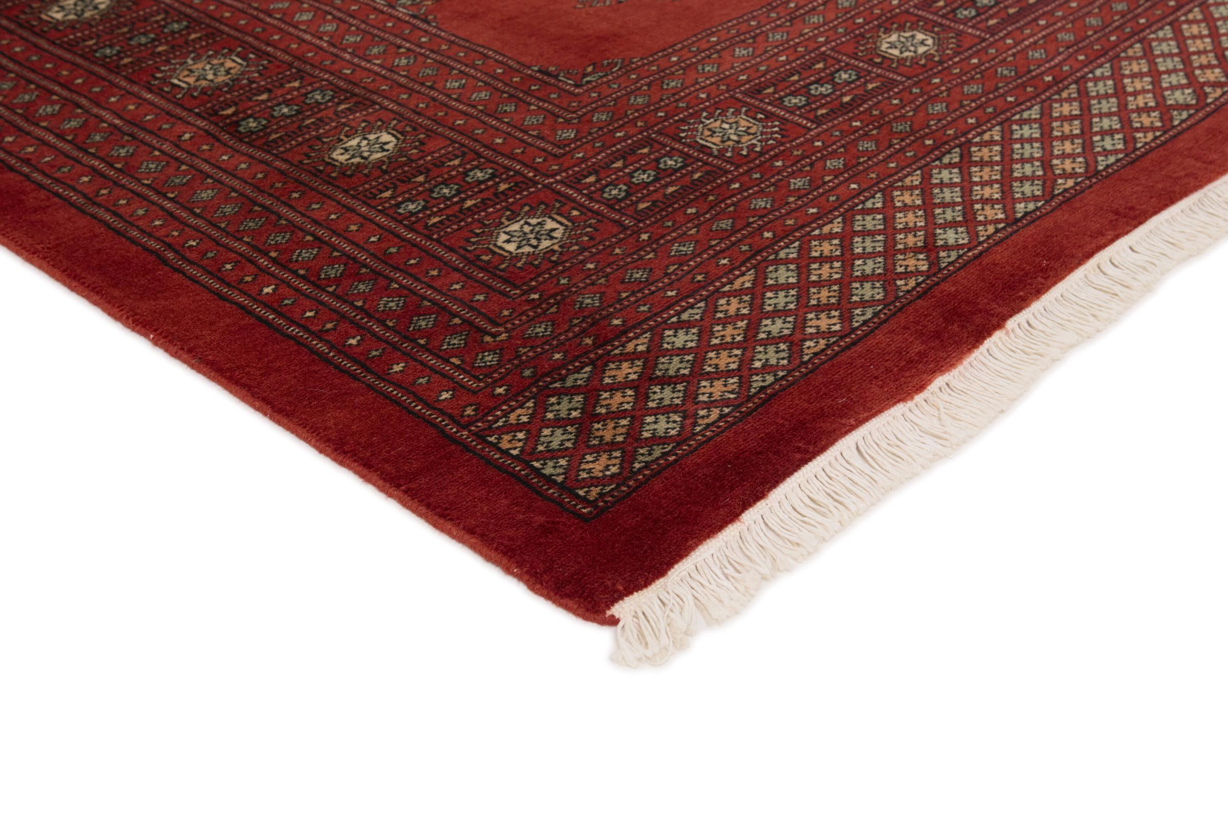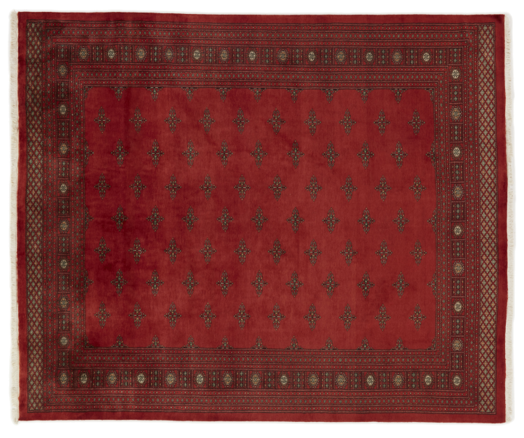Una gran parte de la producción de alfombras pakistaníes tiene lugar en las ciudades de Lahore y Karachi y sus alrededores. Muchos de los tejedores de alfombras de esa época huyeron a Pakistán durante la guerra con la India y se establecieron allí. Hoy en día, se conocen especialmente las alfombras anudadas a mano de Pakistán Bukhara. Al igual que las alfombras orientales afganas, las alfombras paquistaníes también son de colores oscuros y en su mayoría tienen tonos rojos. También el conocido patrón de pata de elefante (patrón octogonal repetido) se puede encontrar en un pakistaní.