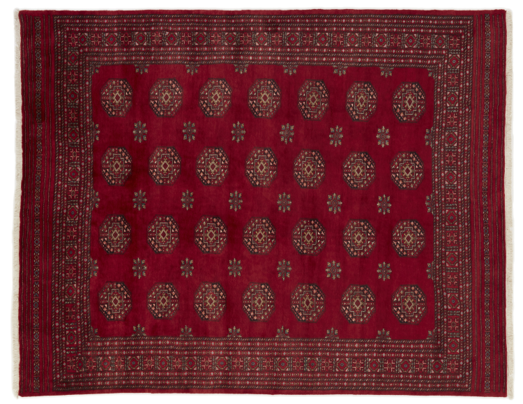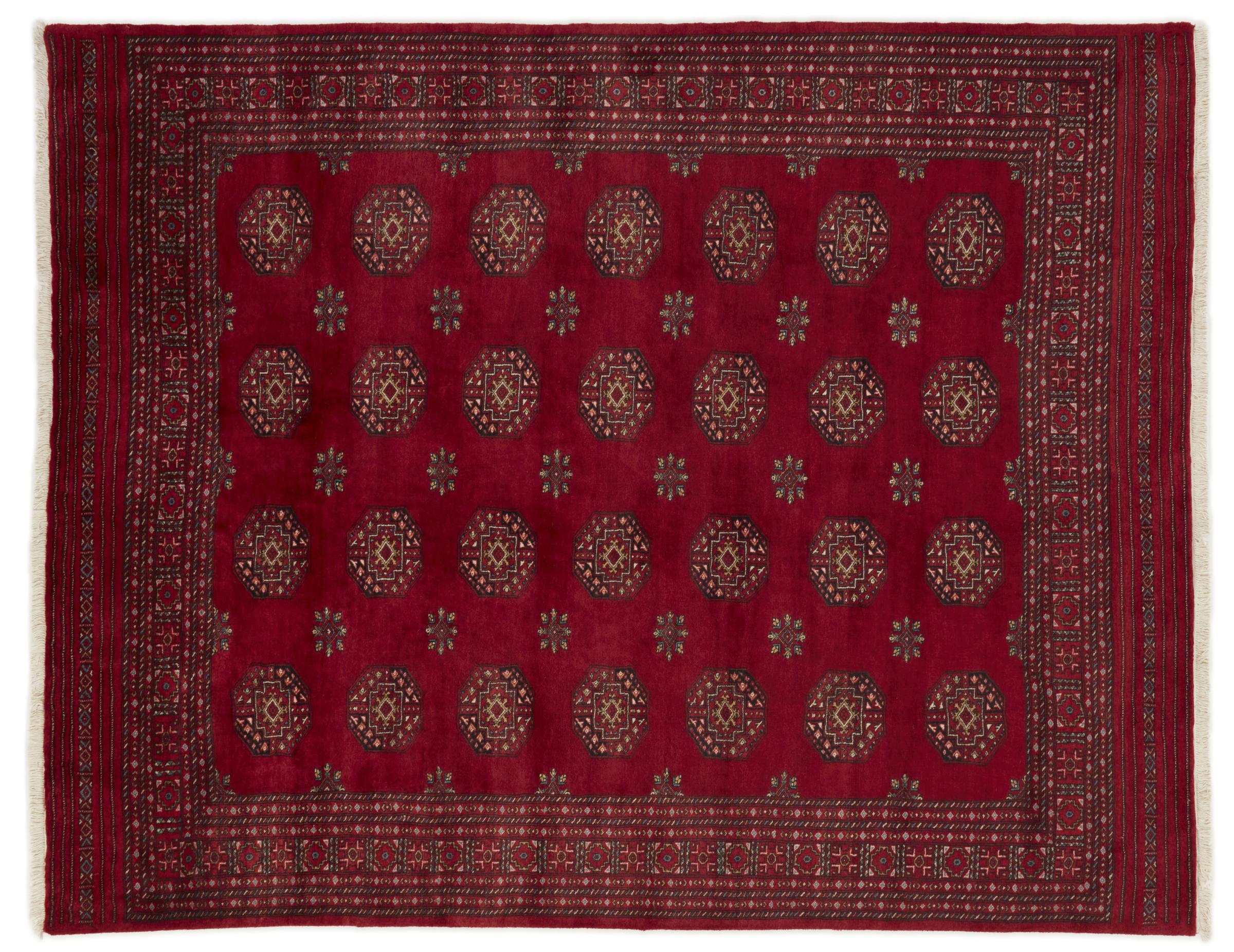 Una gran parte de la producción de alfombras pakistaníes tiene lugar en las ciudades de Lahore y Karachi y sus alrededores. Muchos de los tejedores de alfombras de esa época huyeron a Pakistán durante la guerra con la India y se establecieron allí. Hoy en día, se conocen especialmente las alfombras anudadas a mano de Pakistán Bukhara. Al igual que las alfombras orientales afganas, las alfombras paquistaníes también son de colores oscuros y en su mayoría tienen tonos rojos. También el conocido patrón de pata de elefante (patrón octogonal repetido) se puede encontrar en un pakistaní.