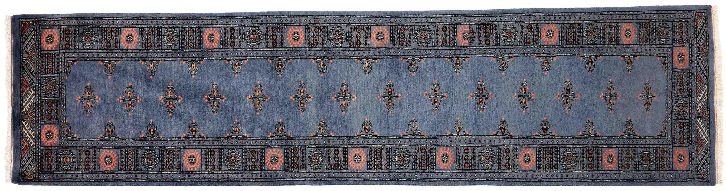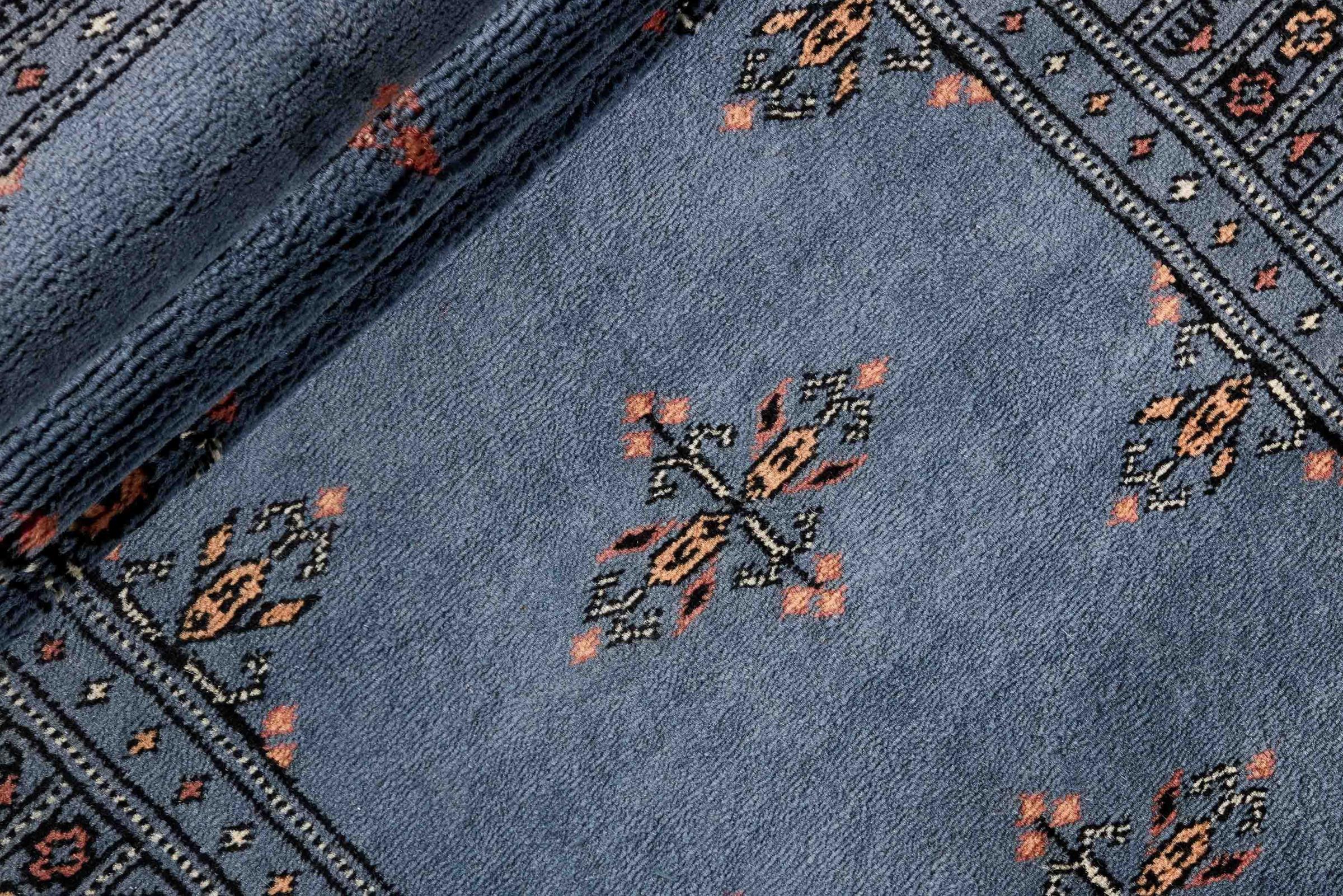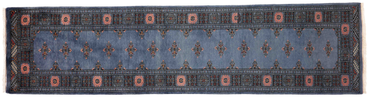 Una gran parte de la producción de alfombras pakistaníes tiene lugar en las ciudades de Lahore y Karachi y sus alrededores. Muchos de los tejedores de alfombras de esa época huyeron a Pakistán durante la guerra con la India y se establecieron allí. Hoy en día, se conocen especialmente las alfombras anudadas a mano de Pakistán Bukhara. Al igual que las alfombras orientales afganas, las alfombras paquistaníes también son de colores oscuros y en su mayoría tienen tonos rojos. También el conocido patrón de pata de elefante (patrón octogonal repetido) se puede encontrar en un pakistaní.