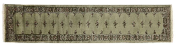 Una gran parte de la producción de alfombras pakistaníes tiene lugar en las ciudades de Lahore y Karachi y sus alrededores. Muchos de los tejedores de alfombras de esa época huyeron a Pakistán durante la guerra con la India y se establecieron allí. Hoy en día, se conocen especialmente las alfombras anudadas a mano de Pakistán Bukhara. Al igual que las alfombras orientales afganas, las alfombras paquistaníes también son de colores oscuros y en su mayoría tienen tonos rojos. También el conocido patrón de pata de elefante (patrón octogonal repetido) se puede encontrar en un pakistaní.