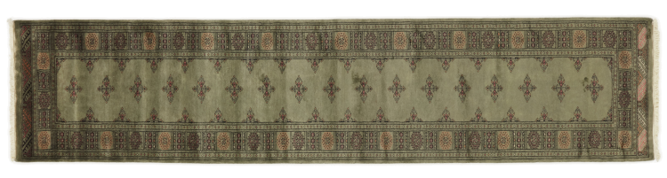 Una gran parte de la producción de alfombras pakistaníes tiene lugar en las ciudades de Lahore y Karachi y sus alrededores. Muchos de los tejedores de alfombras de esa época huyeron a Pakistán durante la guerra con la India y se establecieron allí. Hoy en día, se conocen especialmente las alfombras anudadas a mano de Pakistán Bukhara. Al igual que las alfombras orientales afganas, las alfombras paquistaníes también son de colores oscuros y en su mayoría tienen tonos rojos. También el conocido patrón de pata de elefante (patrón octogonal repetido) se puede encontrar en un pakistaní.