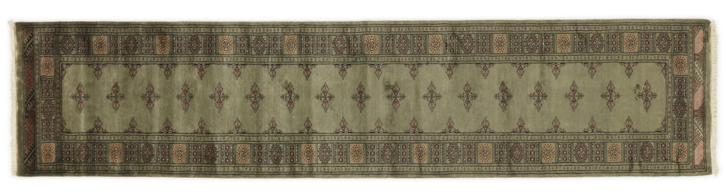 Alfombra número: 311852007971493 Tamaño: 354x81 cm Espesor: alrededor de 8 mm Nudos: 270 000 - 300 000 / m² Elaboración: Anudado a mano Crespón: Lana hilada a mano Urdimbre: Algodón Origen: Pakistán Edad: Nuevo Peso: alrededor de 9 kg Cantidad en stock: Única - Solo 1 en stock