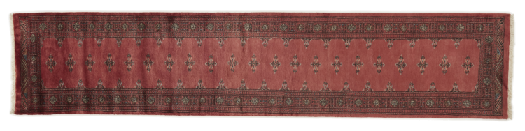 Una gran parte de la producción de alfombras pakistaníes tiene lugar en las ciudades de Lahore y Karachi y sus alrededores. Muchos de los tejedores de alfombras de esa época huyeron a Pakistán durante la guerra con la India y se establecieron allí. Hoy en día, se conocen especialmente las alfombras anudadas a mano de Pakistán Bukhara. Al igual que las alfombras orientales afganas, las alfombras paquistaníes también son de colores oscuros y en su mayoría tienen tonos rojos. También el conocido patrón de pata de elefante (patrón octogonal repetido) se puede encontrar en un pakistaní.
