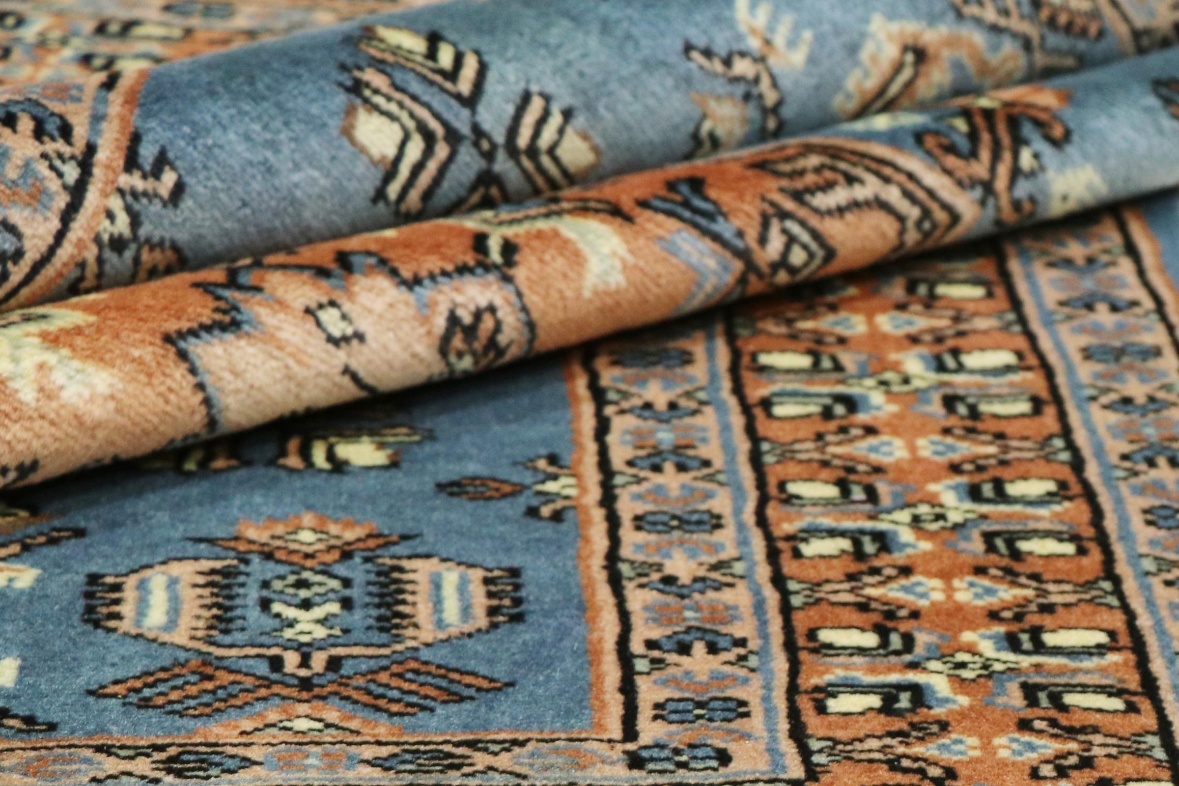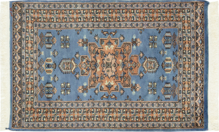 Una gran parte de la producción de alfombras pakistaníes tiene lugar en las ciudades de Lahore y Karachi y sus alrededores. Muchos de los tejedores de alfombras de esa época huyeron a Pakistán durante la guerra con la India y se establecieron allí. Hoy en día, se conocen especialmente las alfombras anudadas a mano de Pakistán Bukhara. Al igual que las alfombras orientales afganas, las alfombras paquistaníes también son de colores oscuros y en su mayoría tienen tonos rojos. También el conocido patrón de pata de elefante (patrón octogonal repetido) se puede encontrar en un pakistaní.