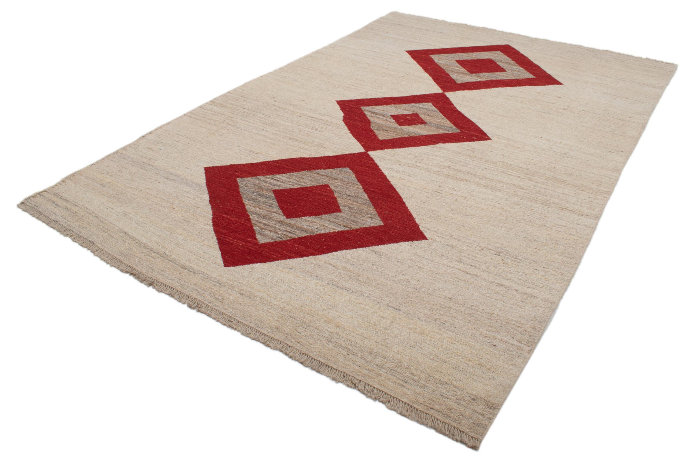 Esta hermosa alfombra es una Gabbeh persa y por lo tanto pertenece a las alfombras Gabbeh de mayor calidad. Las alfombras son anudadas por nómadas o seminómadas en Irán según la artesanía tradicional. Los motivos y patrones simples están inspirados en su mayoría por el entorno inmediato de los nómadas. Por ejemplo, los camellos, árboles o arbustos se pueden encontrar en las alfombras tradicionales. Las alfombras gabbeh persas están hechas de lana de rebaños de ovejas criados localmente. Por lo tanto, la lana se sigue hilando a mano. Así, cada una de estas alfombras orientales encarna un carácter único de la cultura de siglos de antigüedad.
