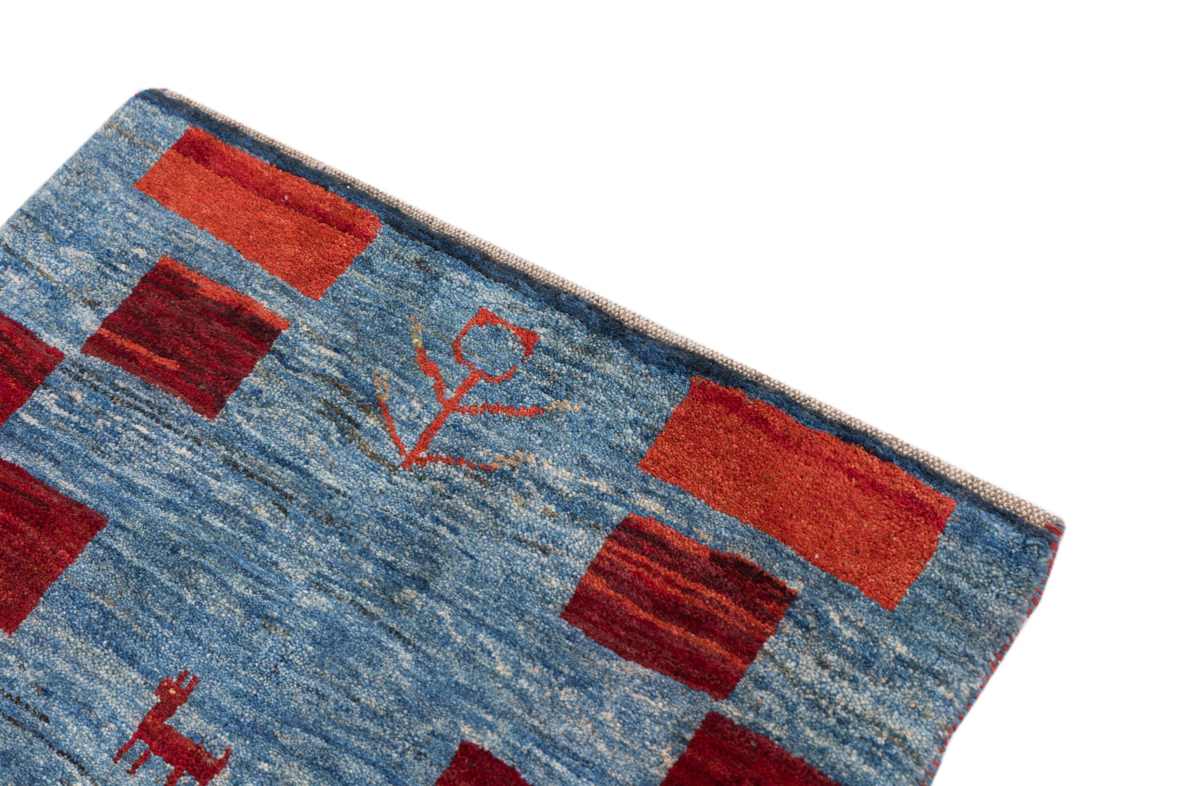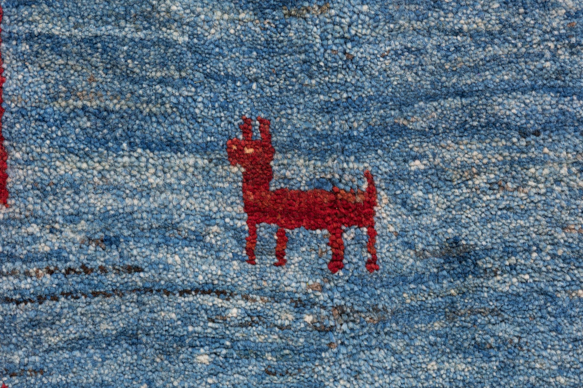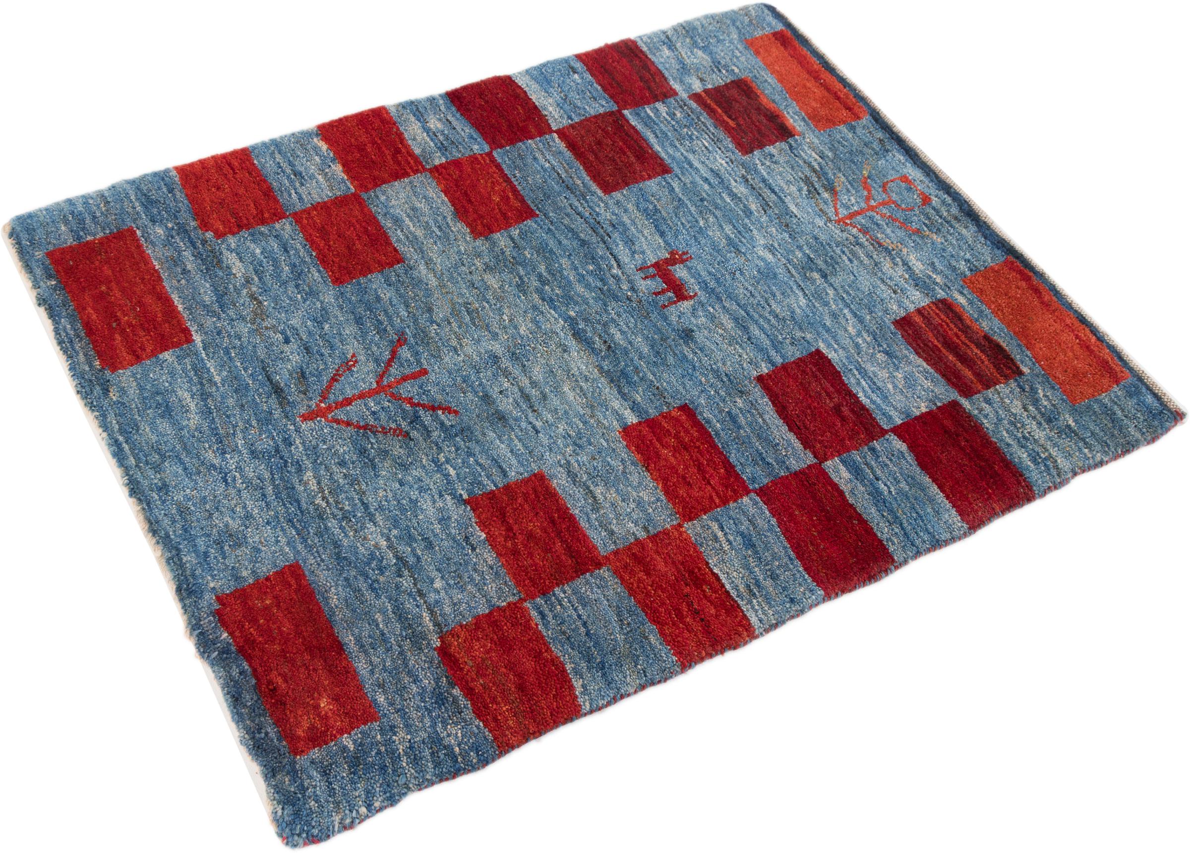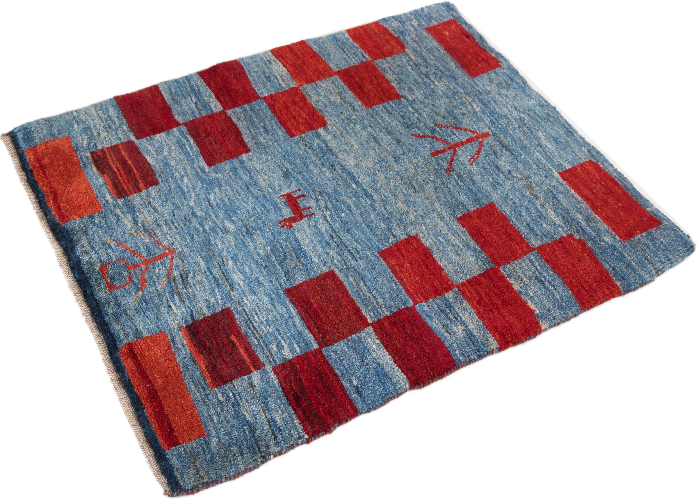 Esta hermosa alfombra es una Gabbeh persa y por lo tanto pertenece a las alfombras Gabbeh de mayor calidad. Las alfombras son anudadas por nómadas o seminómadas en Irán según la artesanía tradicional. Los motivos y patrones simples están inspirados en su mayoría por el entorno inmediato de los nómadas. Por ejemplo, los camellos, árboles o arbustos se pueden encontrar en las alfombras tradicionales. Las alfombras gabbeh persas están hechas de lana de rebaños de ovejas criados localmente. Por lo tanto, la lana se sigue hilando a mano. Así, cada una de estas alfombras orientales encarna un carácter único de la cultura de siglos de antigüedad.