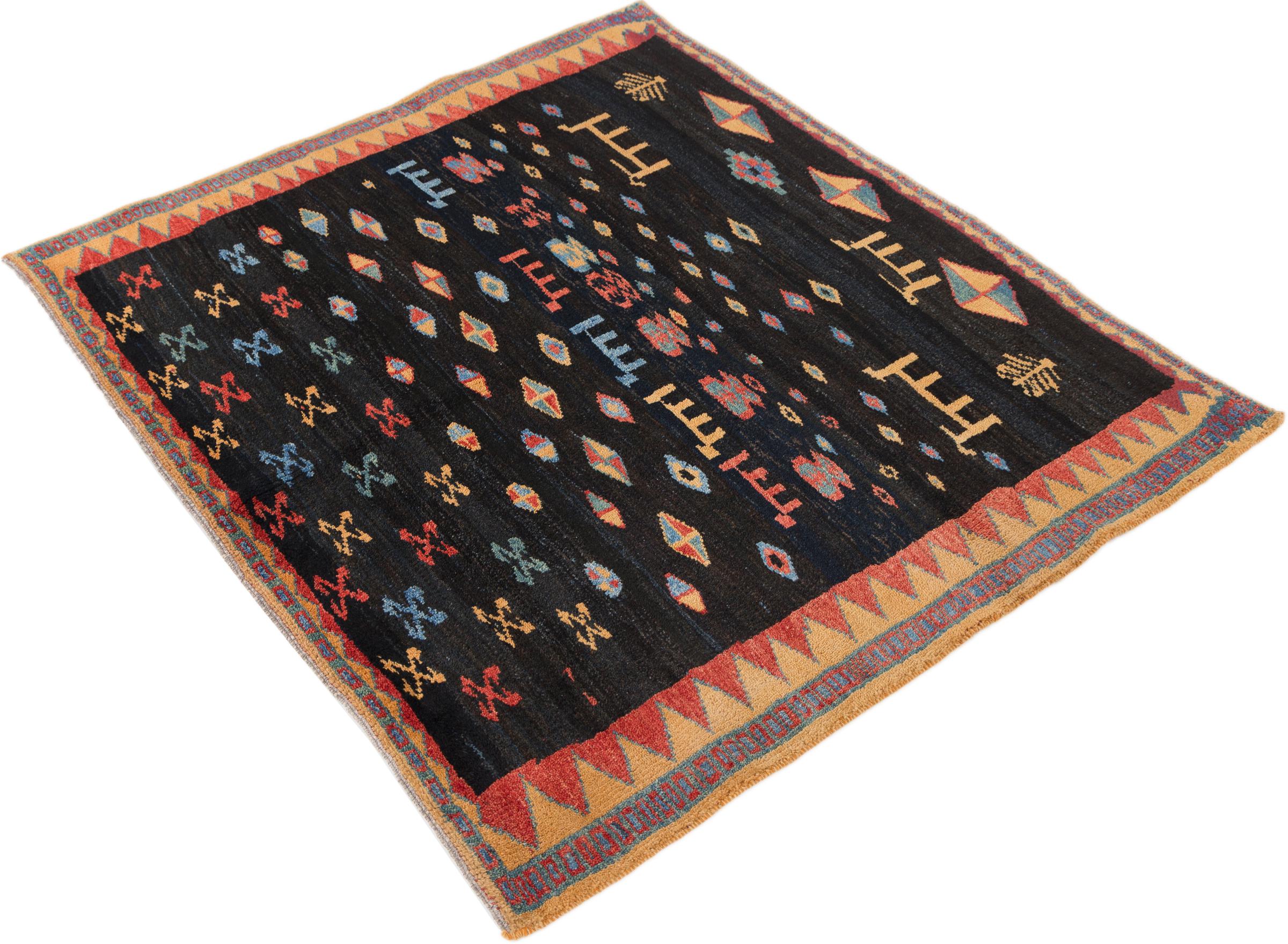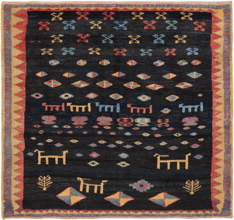 Alfombra número: 295950007675 Tamaño: 155x142 cm Espesor: alrededor de 18 mm Nudos: 72 000 - 90 000 / m² Elaboración: Anudado a mano Crespón: Lana hilada a mano Urdimbre: Lana de oveja Origen: Persia / Iran Edad: Nuevo Peso: alrededor de 11 kg También conocido como Gabbe, Ghabbeh Cantidad en stock: Única - Solo 1 en stock