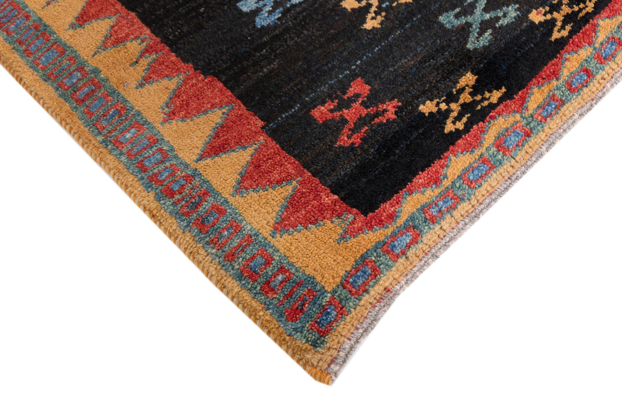 Esta hermosa alfombra es una Gabbeh persa y por lo tanto pertenece a las alfombras Gabbeh de mayor calidad. Las alfombras son anudadas por nómadas o seminómadas en Irán según la artesanía tradicional. Los motivos y patrones simples están inspirados en su mayoría por el entorno inmediato de los nómadas. Por ejemplo, los camellos, árboles o arbustos se pueden encontrar en las alfombras tradicionales. Las alfombras gabbeh persas están hechas de lana de rebaños de ovejas criados localmente. Por lo tanto, la lana se sigue hilando a mano. Así, cada una de estas alfombras orientales encarna un carácter único de la cultura de siglos de antigüedad.
