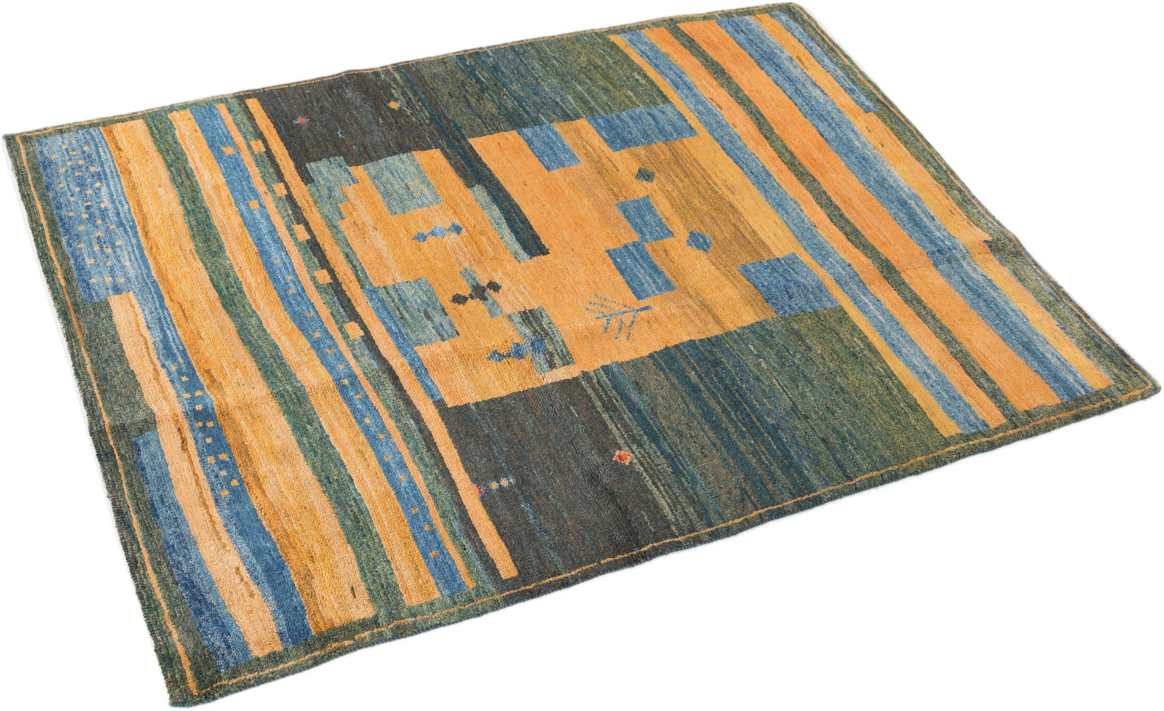 Este Gabbeh persa anudado a mano impresiona de inmediato con su alta calidad y su pelo muy robusto. Fue anudado a mano por nómadas Ghashghai en la provincia de Fars, en el sur de Persia, utilizando la mejor lana de oveja local. Para teñir la lana se utilizan tintes vegetales naturales. Por lo tanto, también es una adición muy valiosa a la habitación de los niños. Este Gabbeh persa representa la clase más alta de alfombras Gabbeh.
