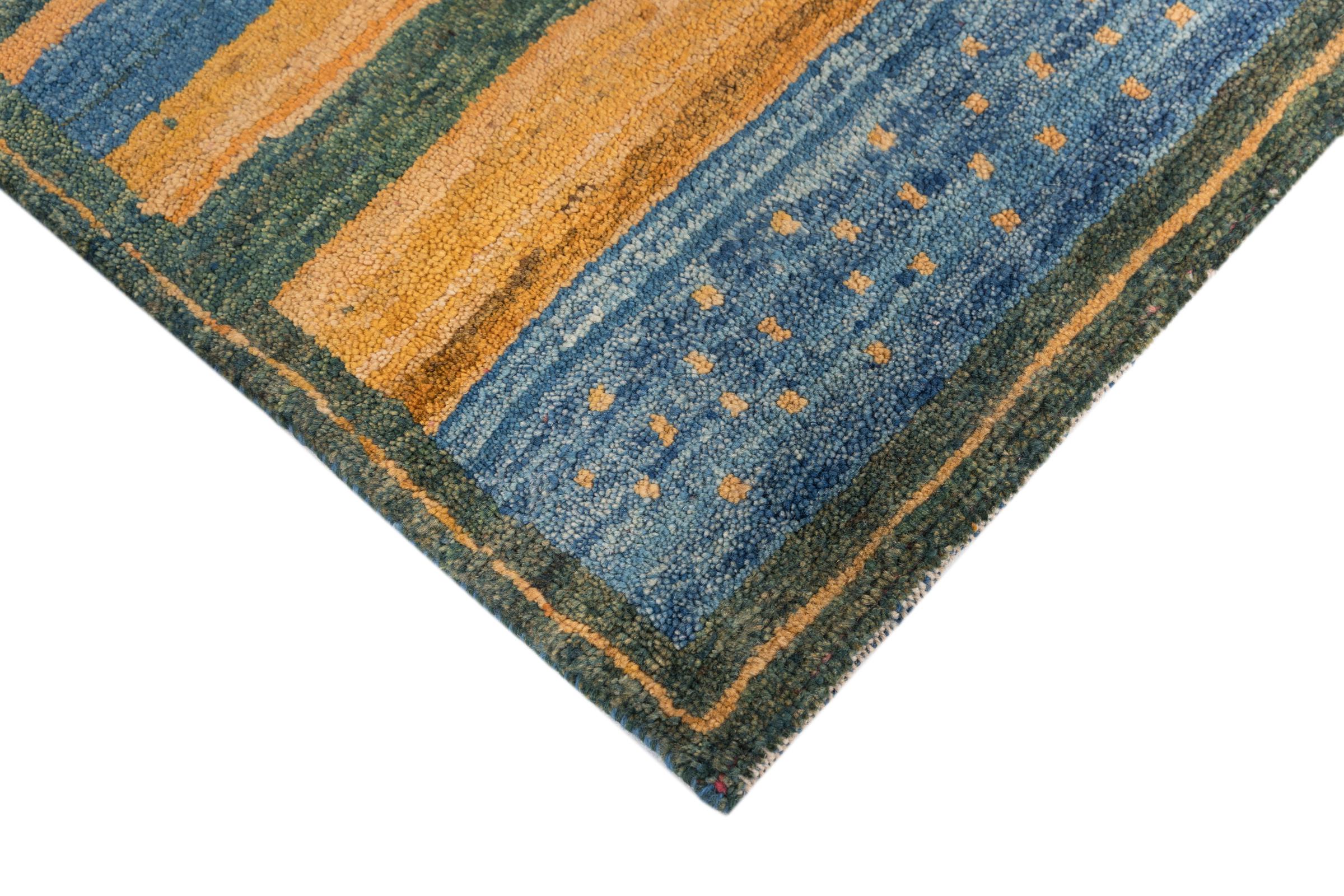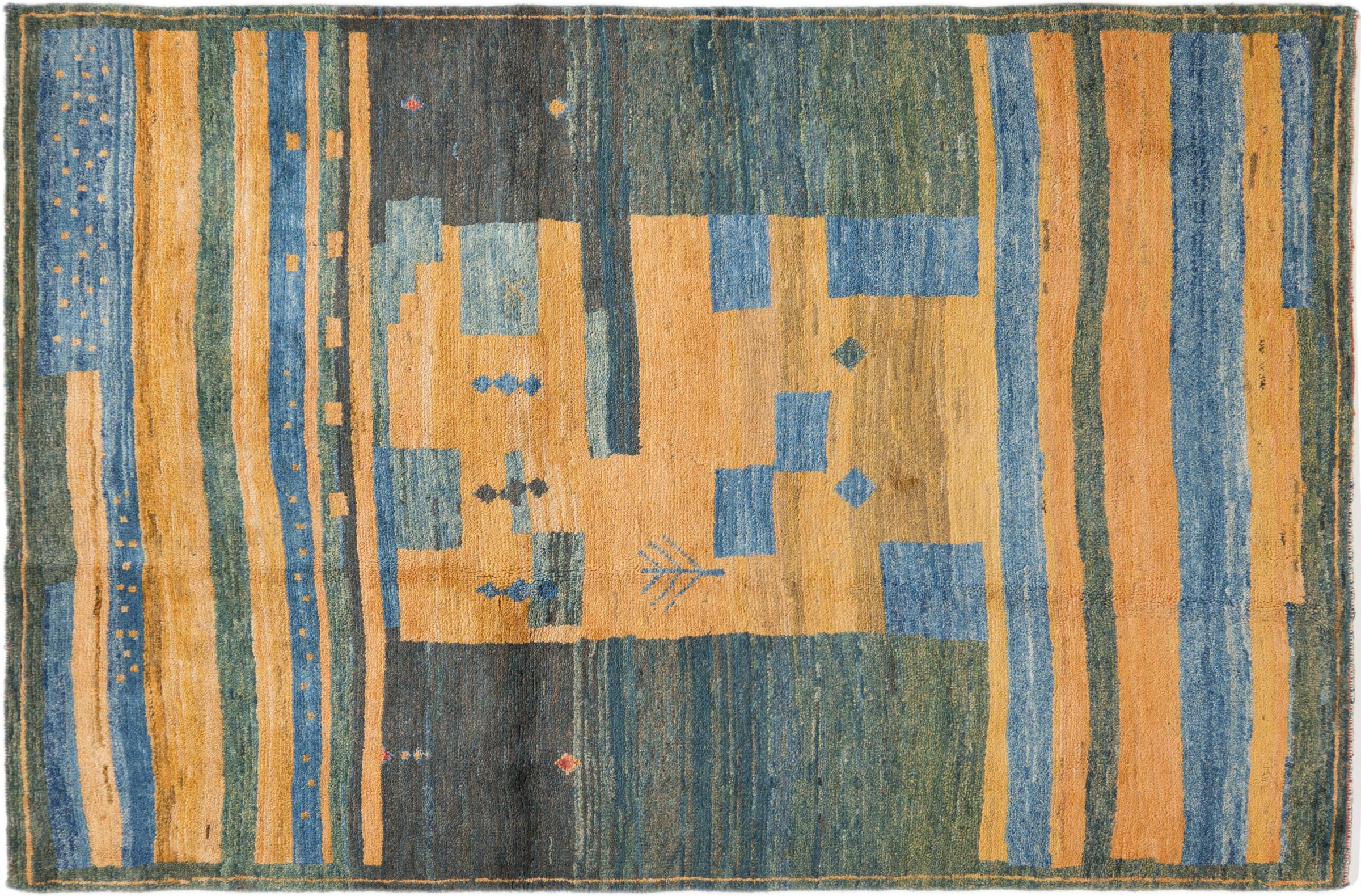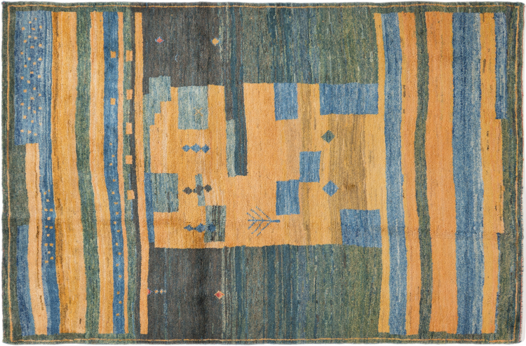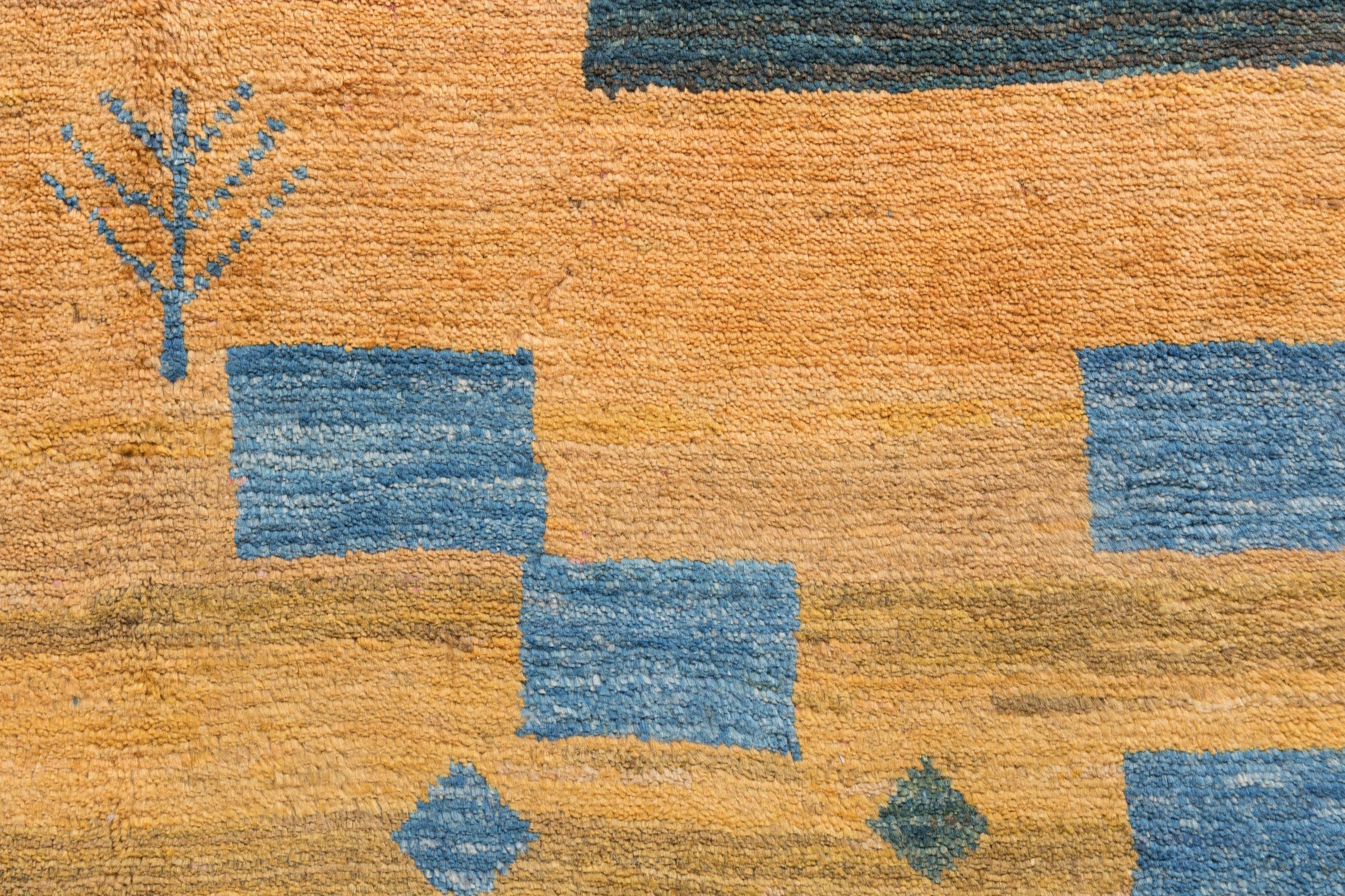 Esta hermosa alfombra es una Gabbeh persa y por lo tanto pertenece a las alfombras Gabbeh de mayor calidad. Las alfombras son anudadas por nómadas o seminómadas en Irán según la artesanía tradicional. Los motivos y patrones simples están inspirados en su mayoría por el entorno inmediato de los nómadas. Por ejemplo, los camellos, árboles o arbustos se pueden encontrar en las alfombras tradicionales. Las alfombras gabbeh persas están hechas de lana de rebaños de ovejas criados localmente. Por lo tanto, la lana se sigue hilando a mano. Así, cada una de estas alfombras orientales encarna un carácter único de la cultura de siglos de antigüedad.