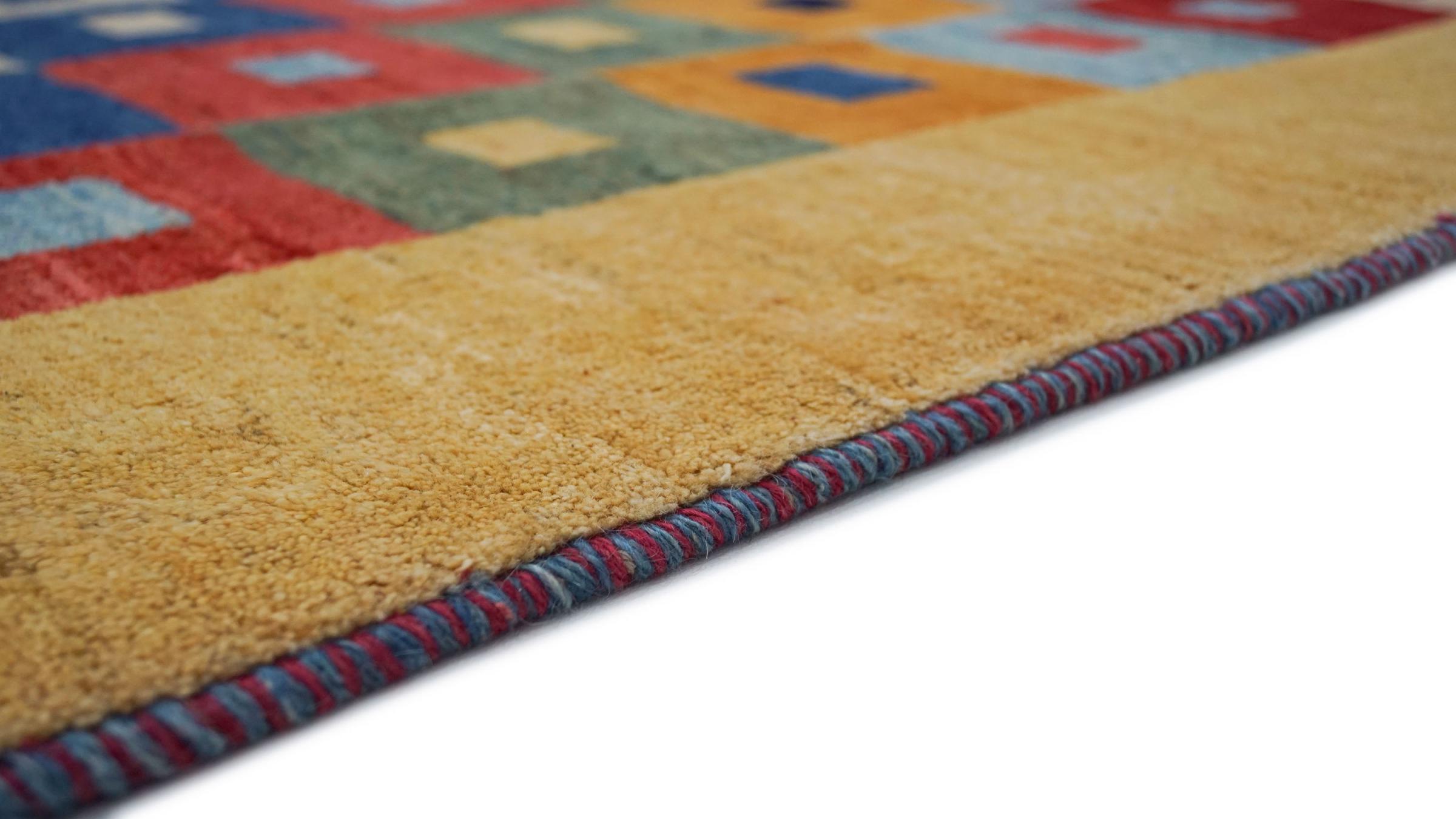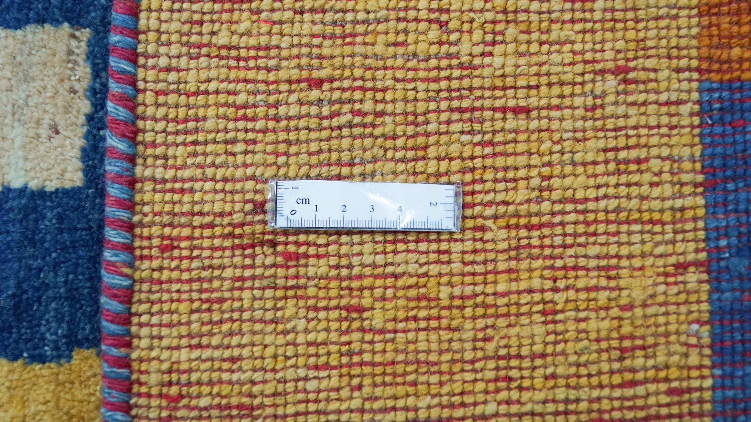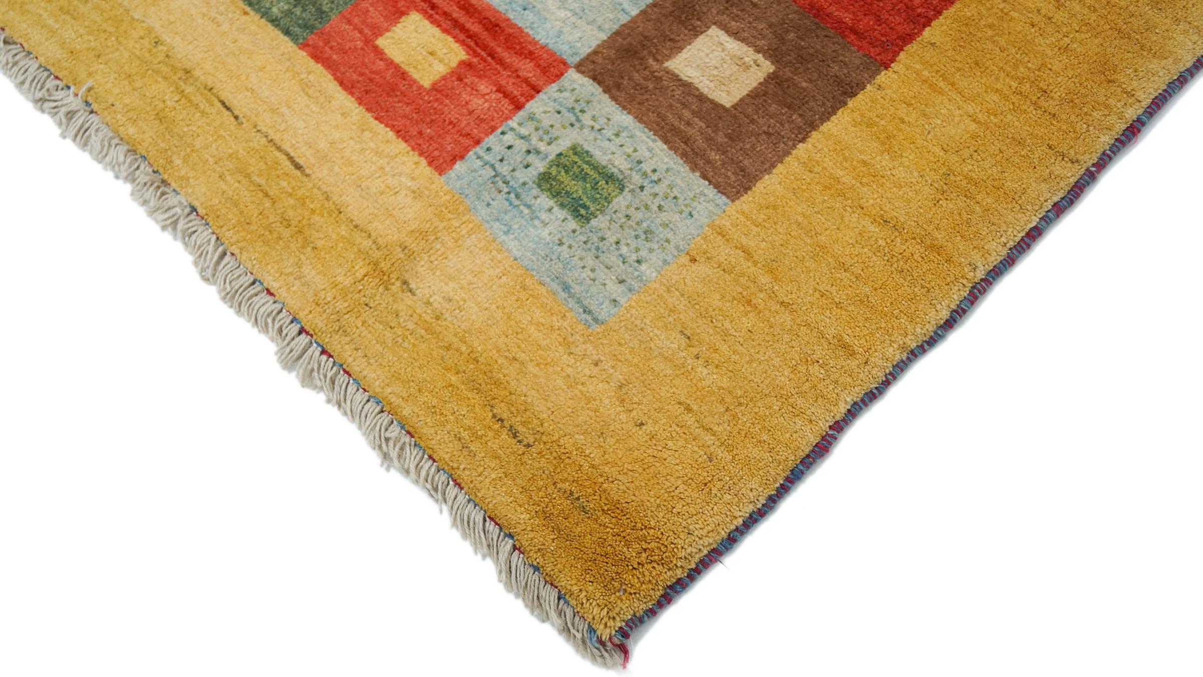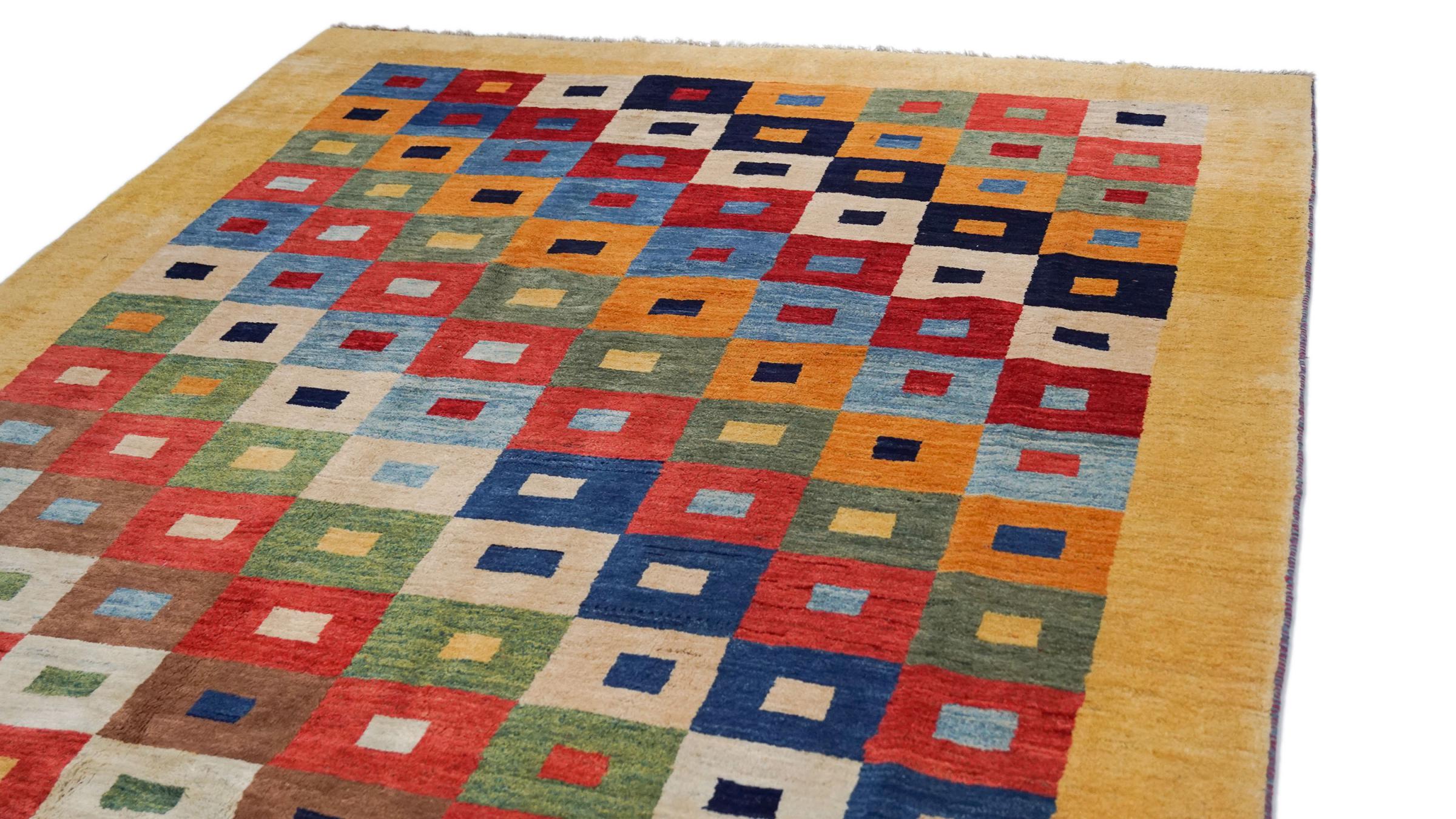 Esta hermosa alfombra es una Gabbeh persa y por lo tanto pertenece a las alfombras Gabbeh de mayor calidad. Las alfombras son anudadas por nómadas o seminómadas en Irán según la artesanía tradicional. Los motivos y patrones simples están inspirados en su mayoría por el entorno inmediato de los nómadas. Por ejemplo, los camellos, árboles o arbustos se pueden encontrar en las alfombras tradicionales. Las alfombras gabbeh persas están hechas de lana de rebaños de ovejas criados localmente. Por lo tanto, la lana se sigue hilando a mano. Así, cada una de estas alfombras orientales encarna un carácter único de la cultura de siglos de antigüedad.