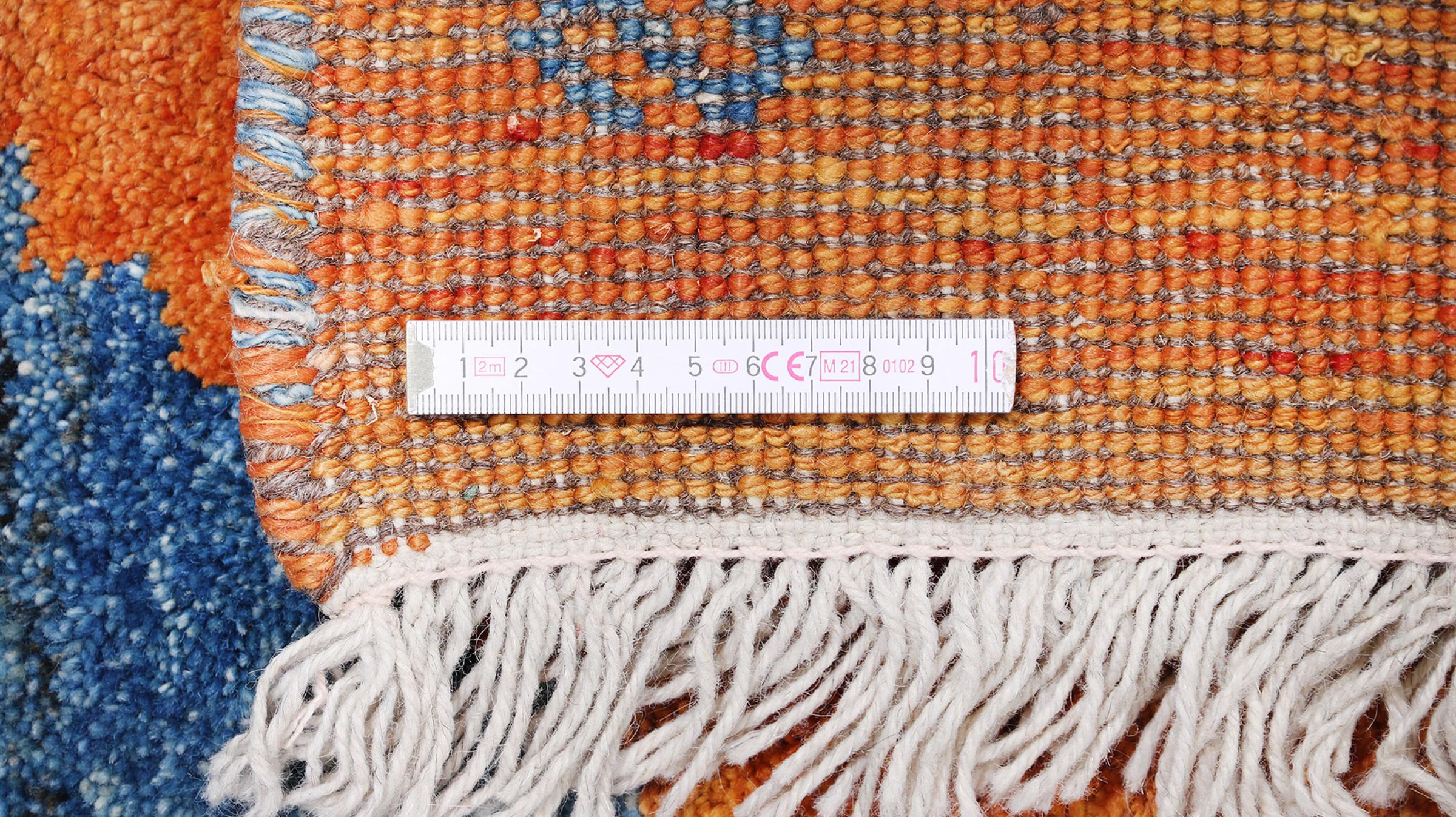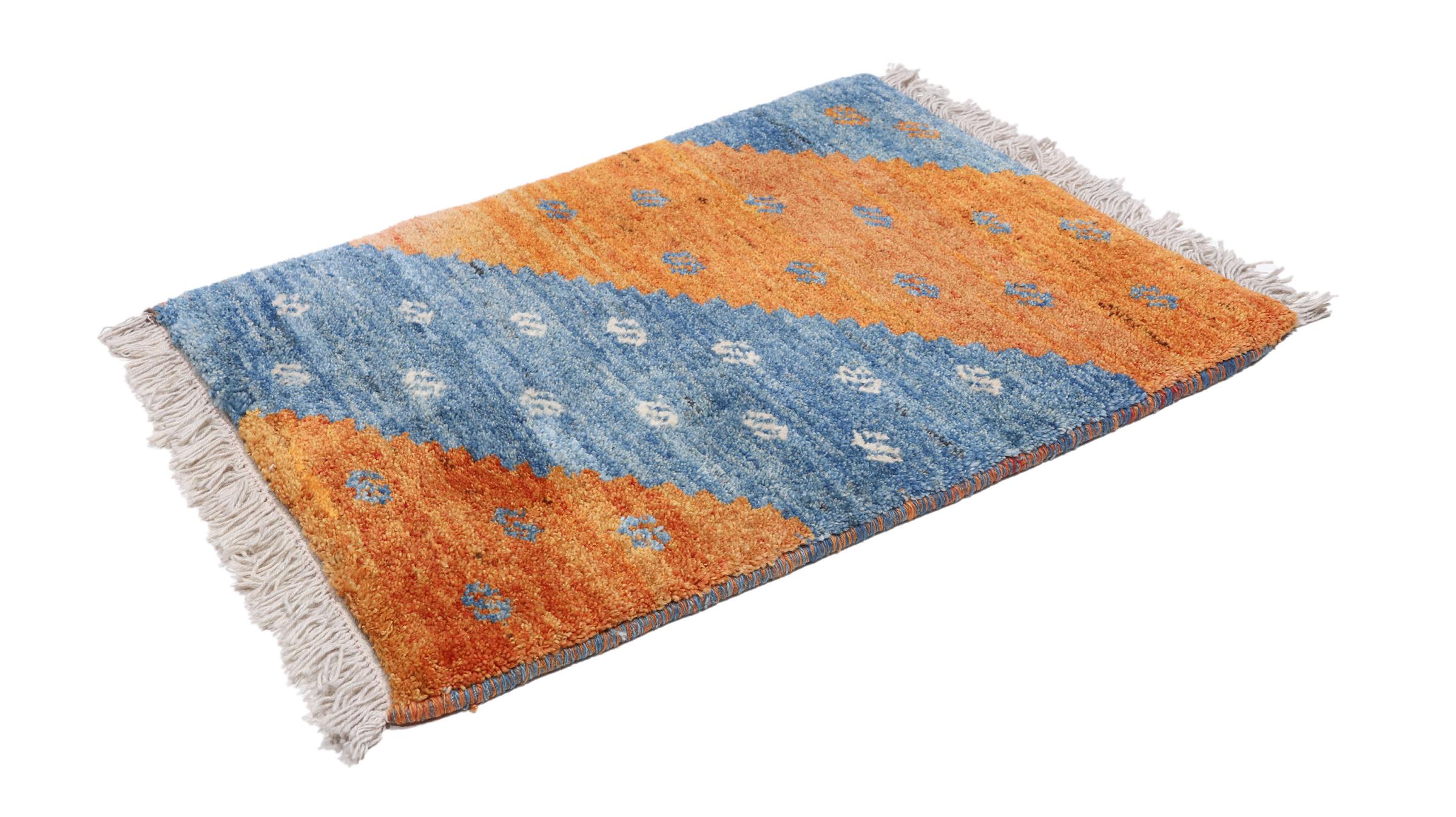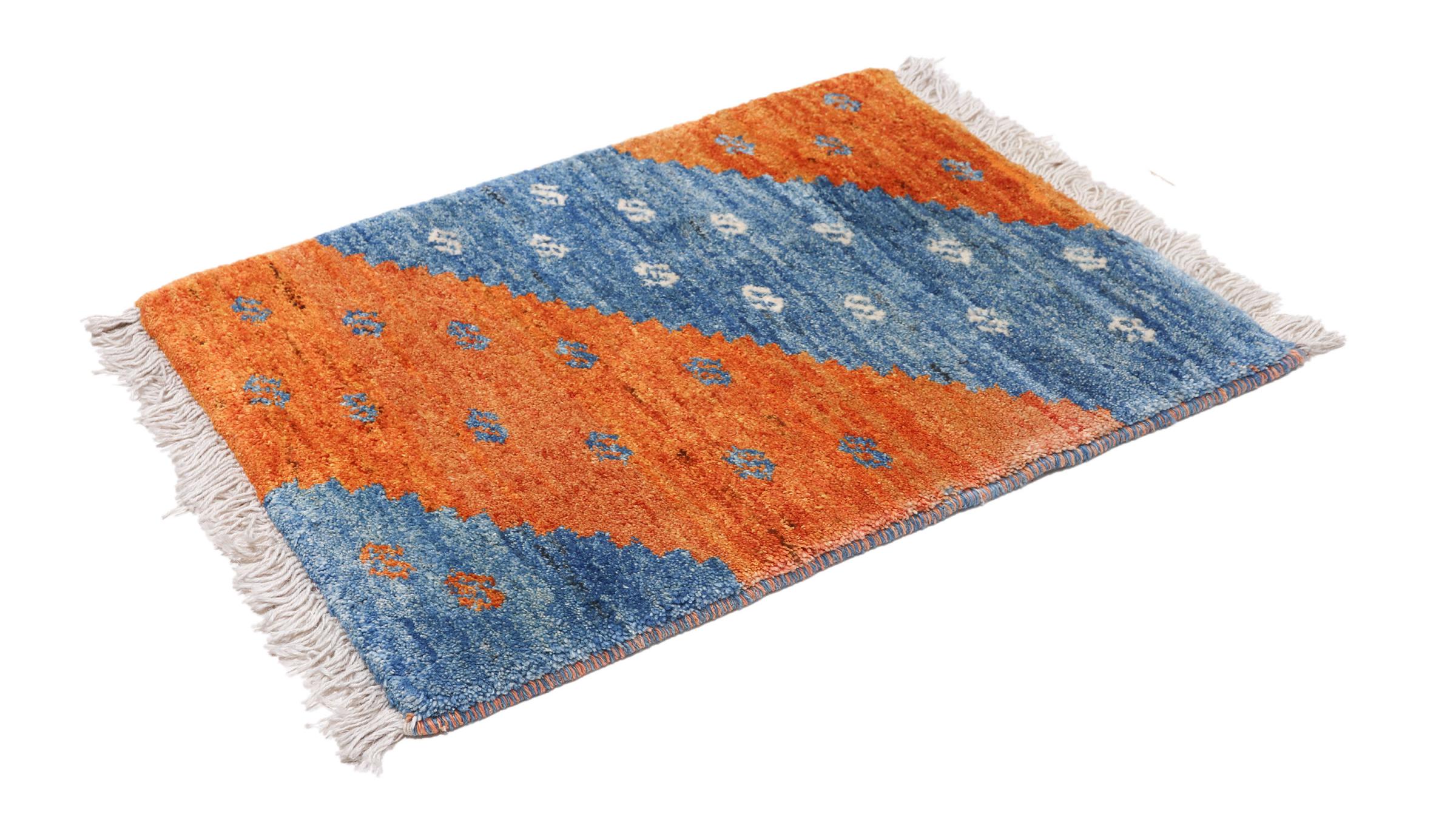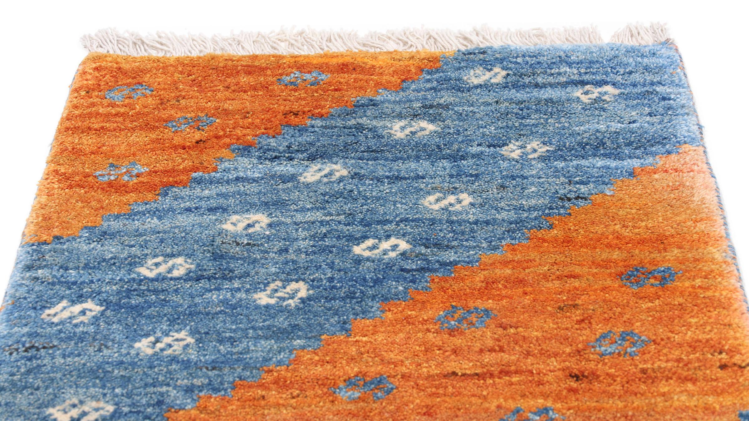 Esta hermosa alfombra es una Gabbeh persa y por lo tanto pertenece a las alfombras Gabbeh de mayor calidad. Las alfombras son anudadas por nómadas o seminómadas en Irán según la artesanía tradicional. Los motivos y patrones simples están inspirados en su mayoría por el entorno inmediato de los nómadas. Por ejemplo, los camellos, árboles o arbustos se pueden encontrar en las alfombras tradicionales. Las alfombras gabbeh persas están hechas de lana de rebaños de ovejas criados localmente. Por lo tanto, la lana se sigue hilando a mano. Así, cada una de estas alfombras orientales encarna un carácter único de la cultura de siglos de antigüedad.